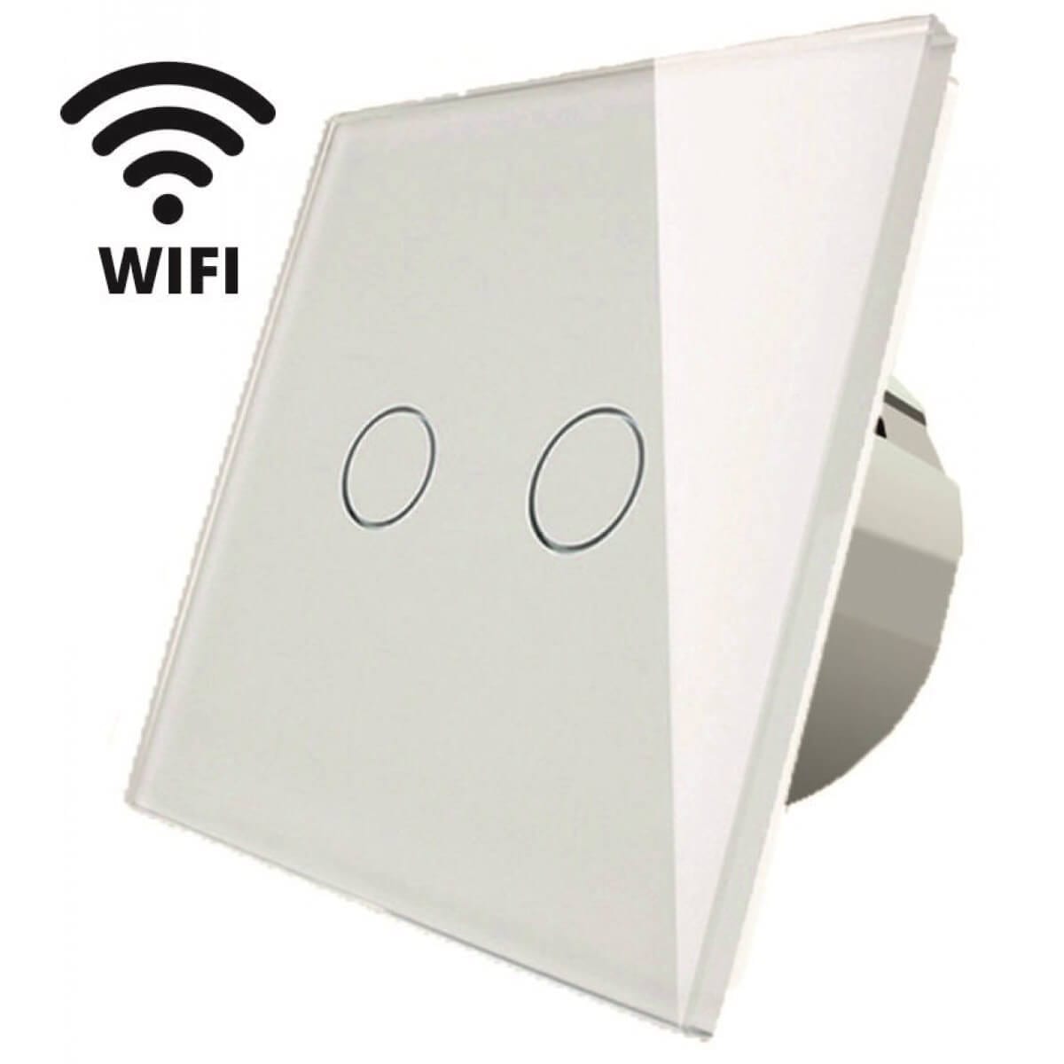 Intrerupator touch dublu WI-FI sticla securizata alb