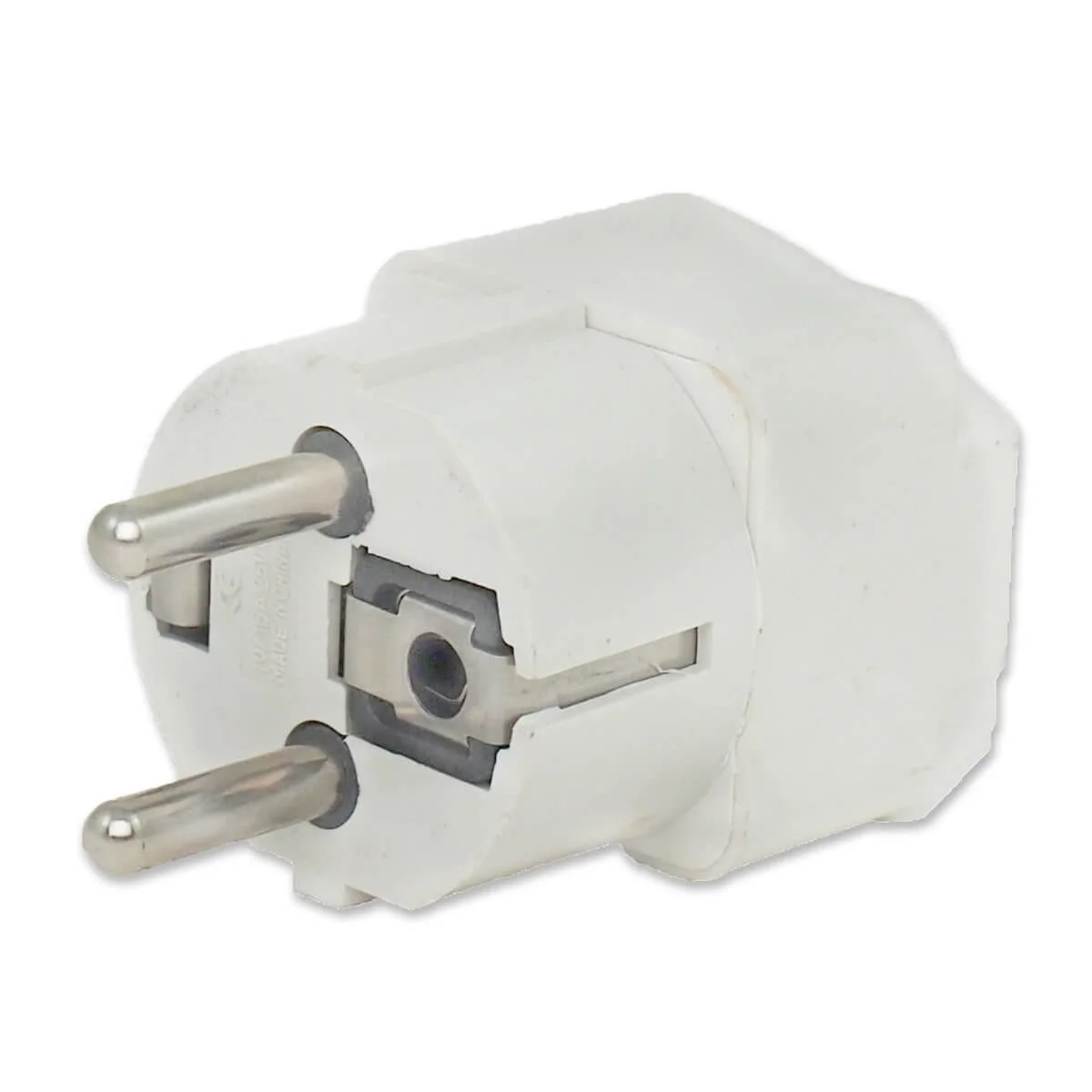 Adaptor de priza de la sistem UK la RO schuko, din cauciuc ignifug, cu impamantare, indice de protectie IP 20 si intensitate 10A.