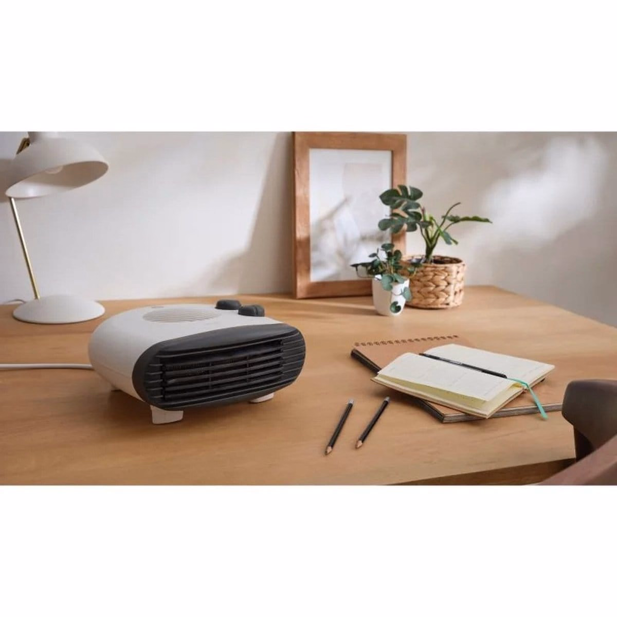 Utilizarea este extrem de simplă, fiind dotată cu 2 butoane mari pe partea superioară pentru selectarea puterii și reglarea termostatului. Designul său compact, cu o înălțime de doar 12,3 cm, permite amplasarea facilă chiar și în spații înguste.