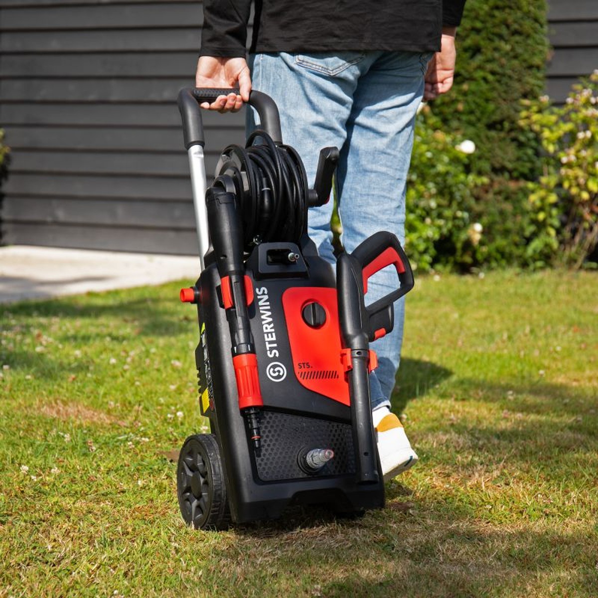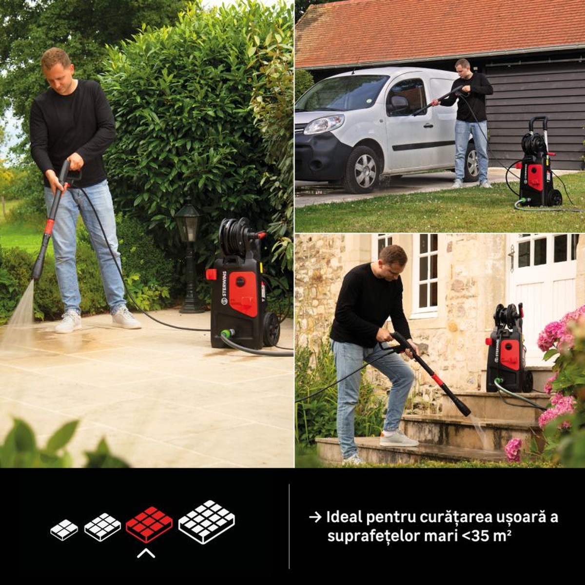 Aparatul de spălat cu înaltă presiune Sterwins ST5 165 bar este proiectat pentru curățarea ușoară și eficientă a suprafețelor mari de până la 35 m². Este un echipament performant, dotat cu un motor de 2500 W ce asigură un debit de 500 L/h, ideal pentru întreținerea curții, a mobilierului de grădină sau a autoturismului.