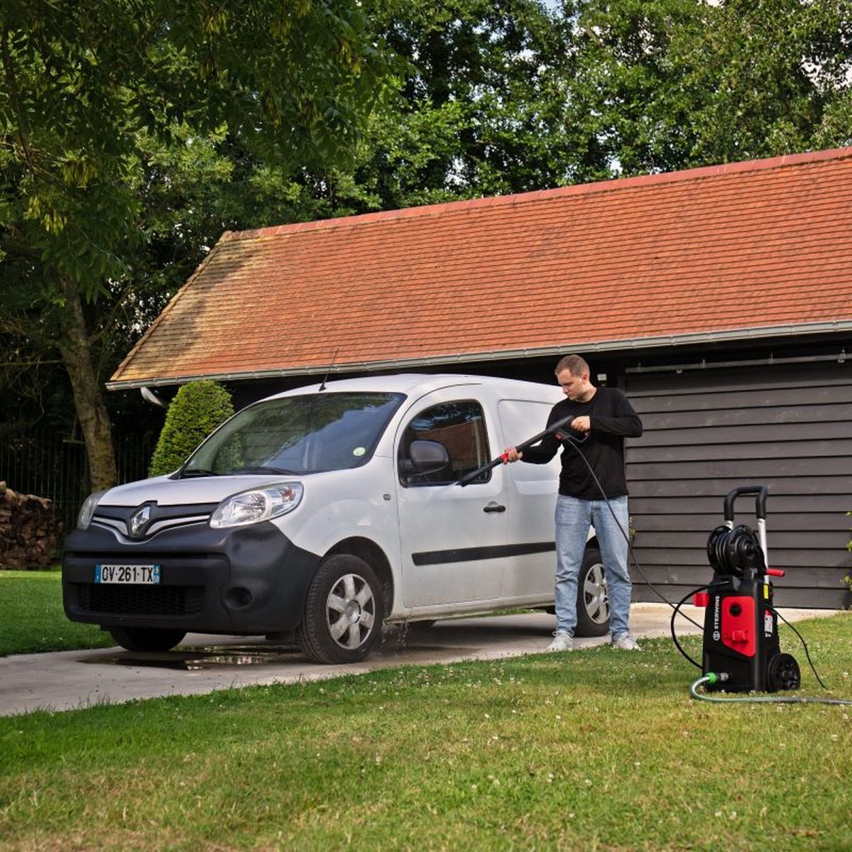 Construcția include o pompă din aluminiu, durabilă și robustă, care garantează o durată de viață extinsă. Aparatul este, de asemenea, prietenos cu mediul, economisind până la 80% din consumul de apă comparativ cu un furtun de grădină convențional. Manevrabilitatea este asigurată de mânerul telescopic, mânerul inferior și treapta specială pentru înclinare ușoară în timpul transportului.
