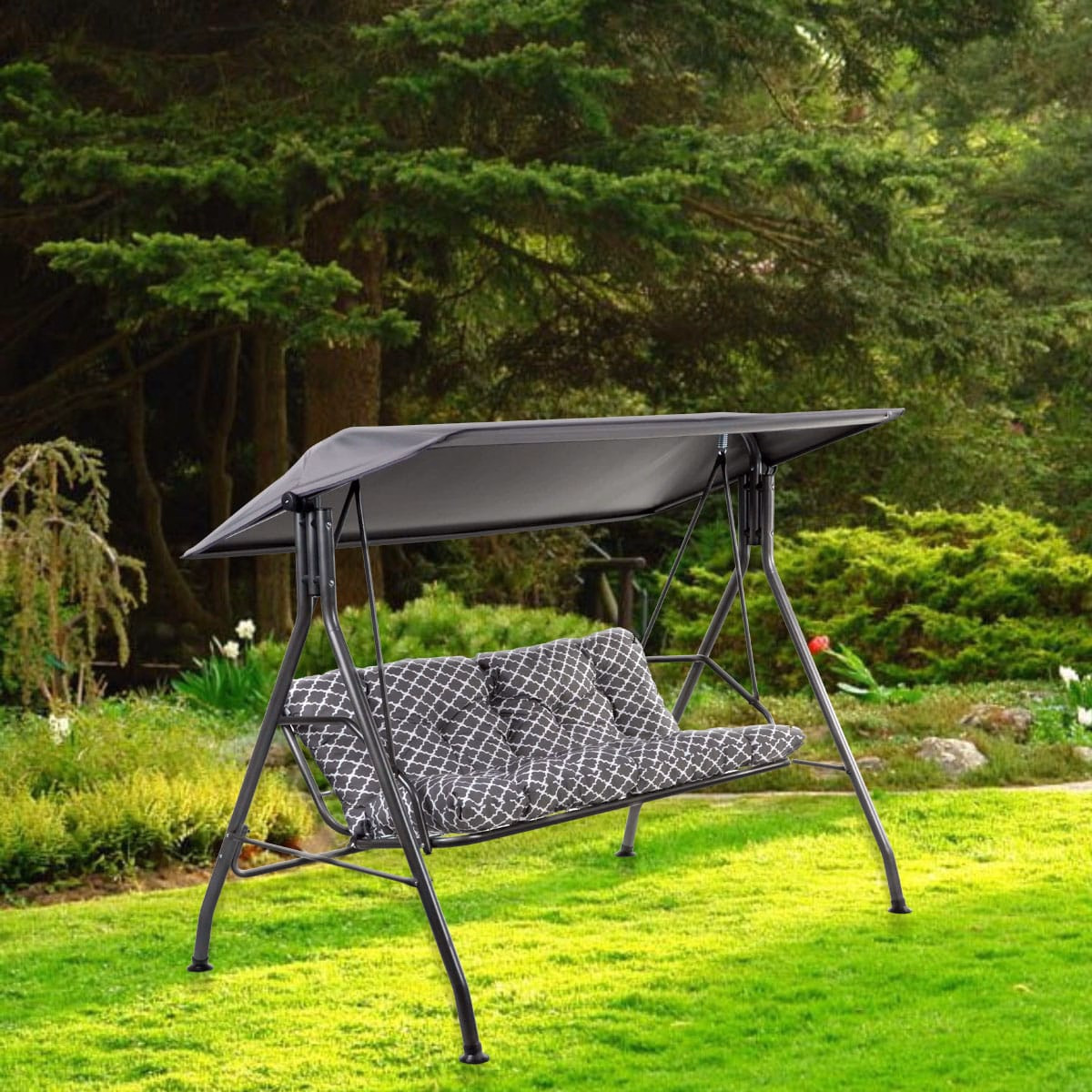 Balansoar de gradina 3 locuri, gri, otel, 202 x 126 x 155 cm, sarcina maxima 300 kg ideal pentru a te relaxa impreuna cu familia in gradina sau pe terasa.