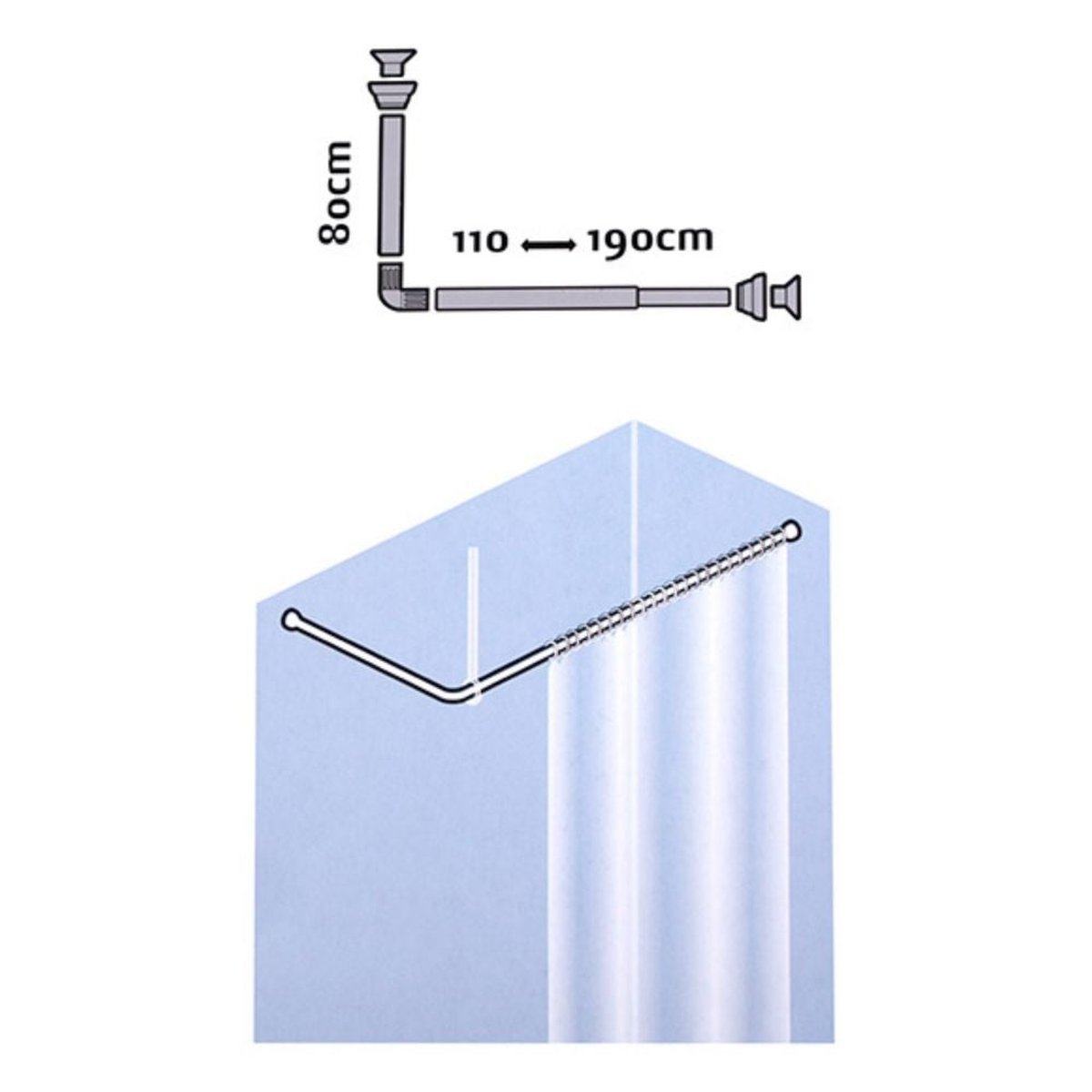 Sistemul extensibil permite ajustarea lungimii între 110 cm și 190 cm, adaptându-se cu ușurință spațiului dumneavoastră. Instalarea se realizează rapid și sigur, între doi pereți, cu ajutorul șuruburilor incluse.