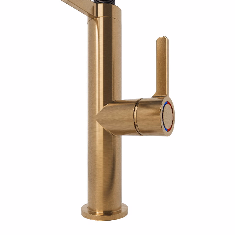 Gatul practic de primavara contrasteaza frumos cu baza si maneta din bronz satinat pentru a rezulta intr-un finisaj izbitor.