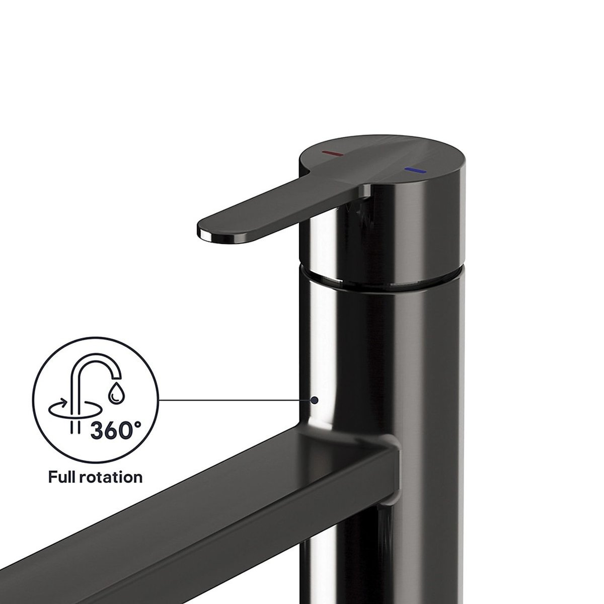 Proiectată pentru o utilizare confortabilă și eficientă, bateria Phoran dispune de o comandă monocomandă, permițând ajustarea ușoară a temperaturii și a fluxului de apă. Pipa pivotantă la 360 de grade oferă o flexibilitate maximă în utilizarea chiuvetei, facilitând curățarea vaselor și a zonelor greu accesibile.