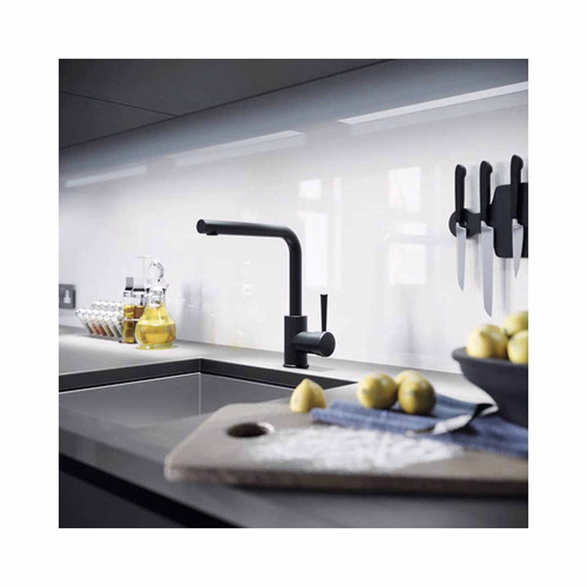 Bateria de bucătărie OLINA de la Lenz impresionează prin designul său minimalist și modern, integrându-se perfect în orice bucătărie contemporană. Culoarea negru mat adaugă un plus de eleganță și rafinament spațiului dumneavoastră.