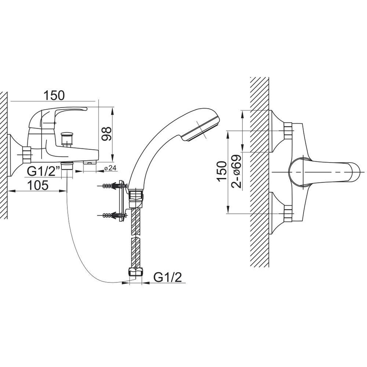 Setul include tot ce aveți nevoie pentru o instalare rapidă și ușoară: un cartuș ceramic durabil pentru o operare lină și de lungă durată, un comutator automat cadă/duș, și un regulator de debit pentru un consum optim de apă. Racordul excentric cu distanța de 150 ± 20 mm asigură compatibilitatea cu majoritatea instalațiilor standard.