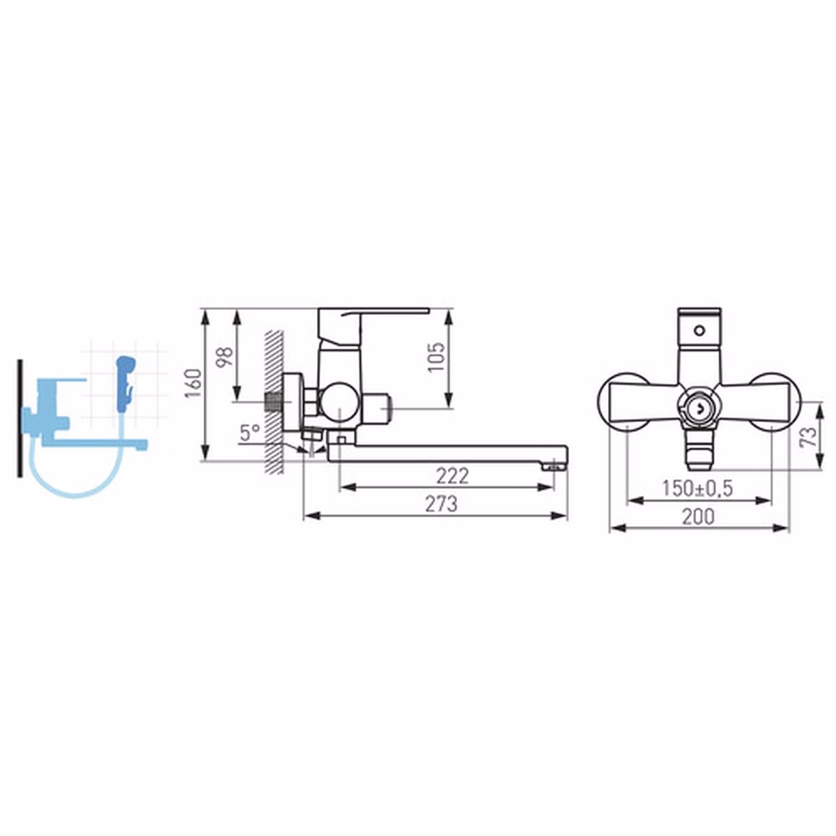 Această baterie monocomandă vă permite controlul facil al temperaturii și debitului apei cu o singură mână. Pipa pivotantă oferă o flexibilitate maximă, asigurând confortul în timpul utilizării. Cu o înălțime de 273 mm și o rază de acțiune de 160 mm, se integrează perfect în orice baie modernă.