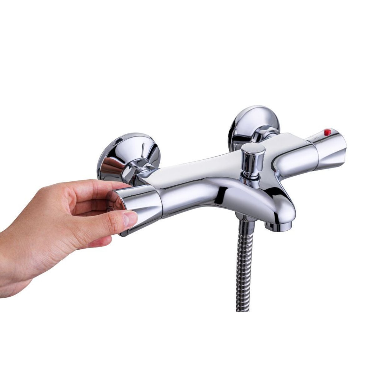 Transformă baia ta într-un spațiu de relaxare și siguranță cu bateria termostatică pentru cadă Nerea. Corpul robust din alamă, finisat într-un crom elegant, se integrează perfect în orice stil de baie, chiar și în spațiile restrânse, datorită formelor sale simple și moderne.