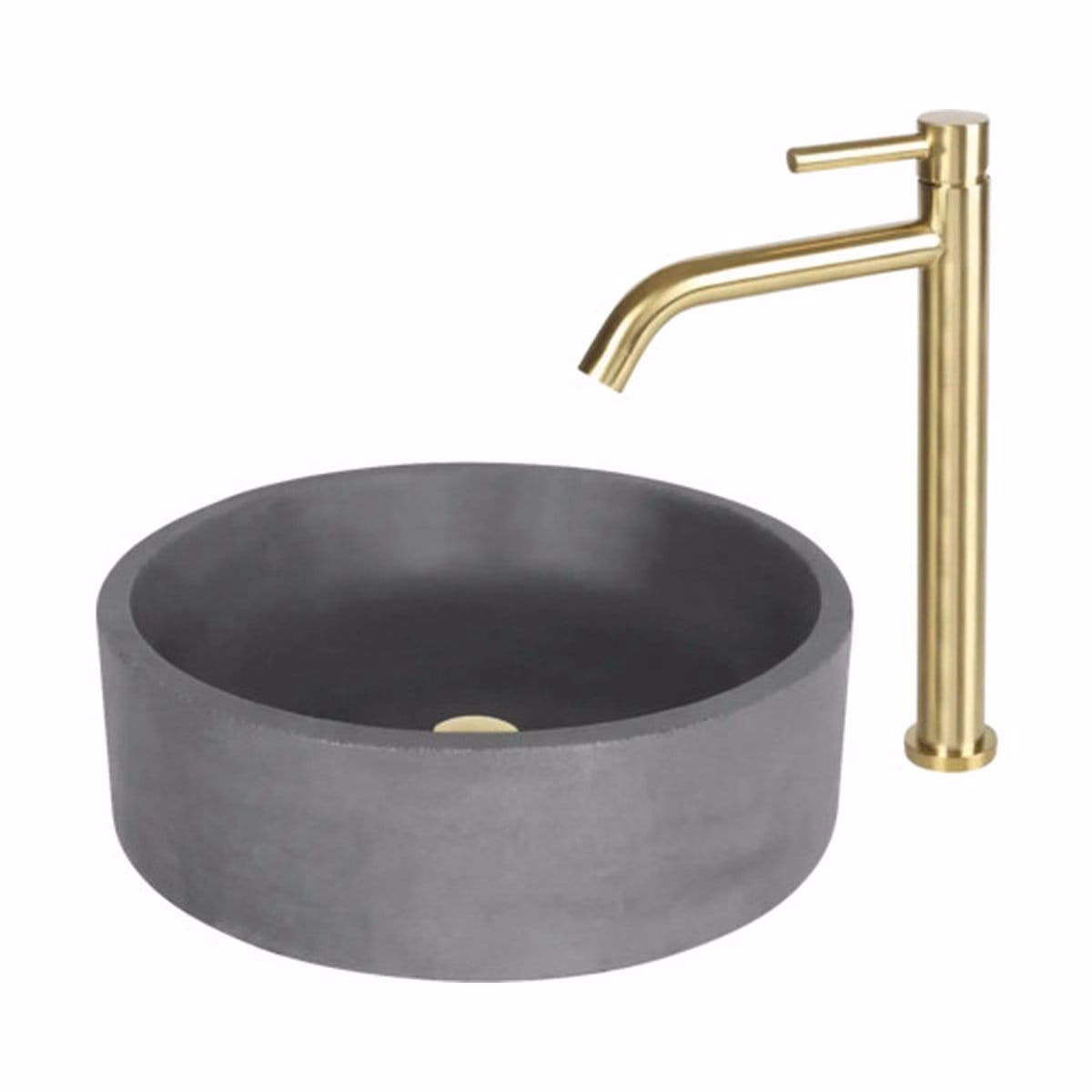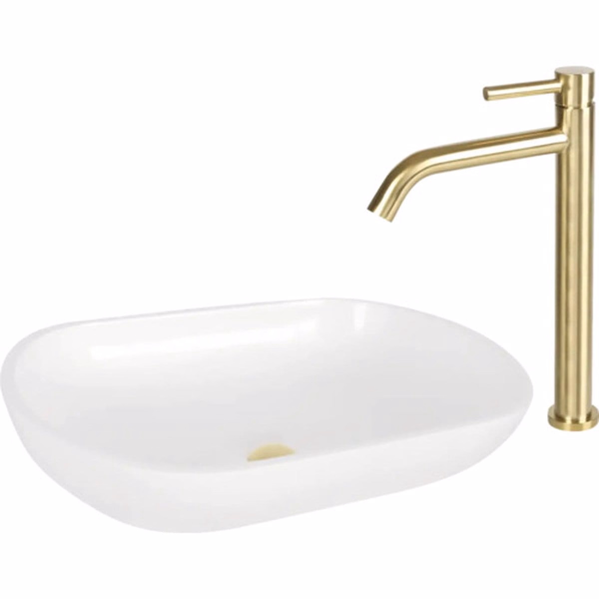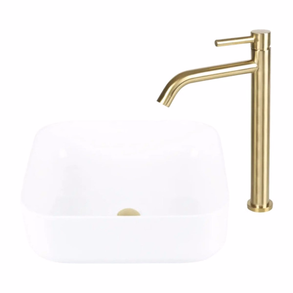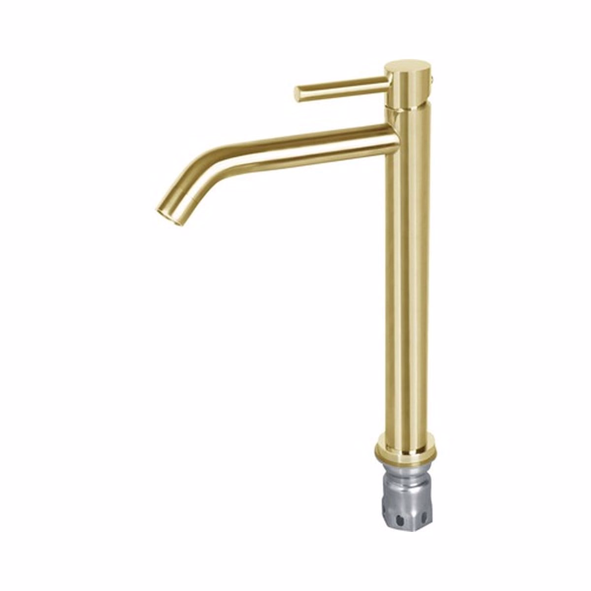 Adăugați un strop de eleganță și rafinament băii dumneavoastră cu această baterie lavoar monocomandă înaltă, cu finisaj auriu mat. Designul său modern și sofisticat se va integra perfect în orice stil de amenajare, oferind un aspect luxos și contemporan.