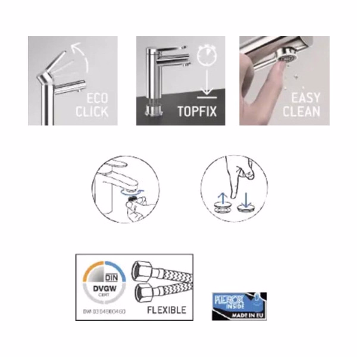 Montaj rapid și ușor: Tehnologia AVITAL Top Mount® permite o instalare rapidă și simplă, economisind timp și efort. Furtunurile de racord flexibile se adaptează ușor la orice configurație, chiar și în spații înguste.