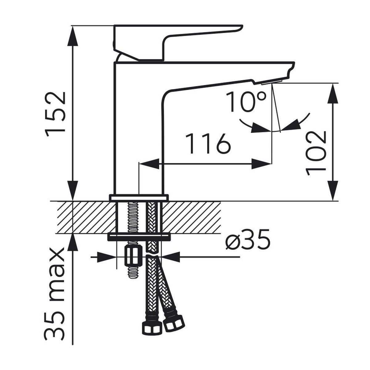 Construită din alamă sanitară solidă, această baterie monocomandă este proiectată pentru durabilitate și performanță. Mecanismul său dispune de un cartuș ceramic de 35 mm, asigurând o operare lină și precisă a debitului de apă rece și caldă. Lungimea furtunului de alimentare de 30 cm facilitează o instalare flexibilă.