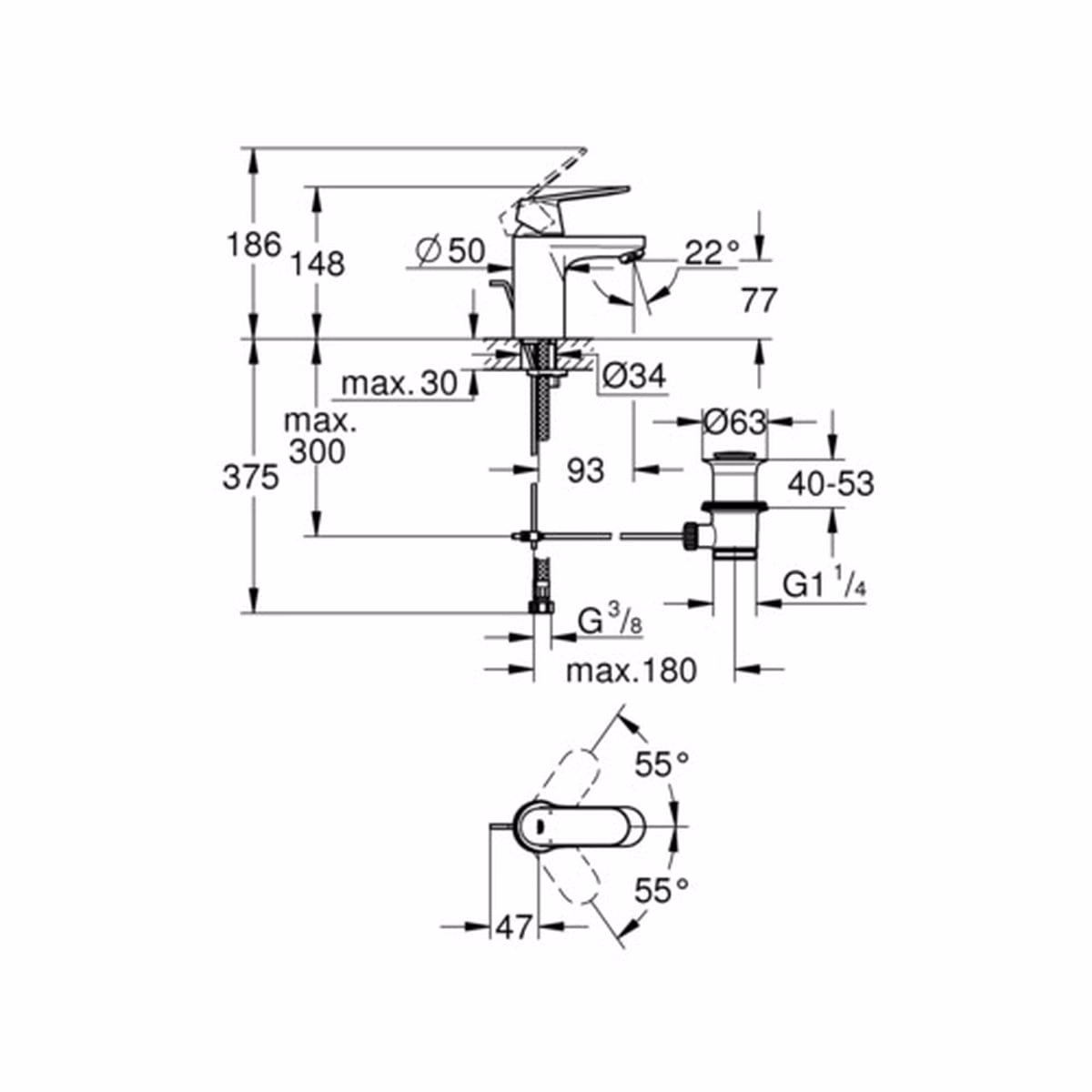 Specificații baterie lavoar monocomandă GROHE Eurosmart Cosmopolitan