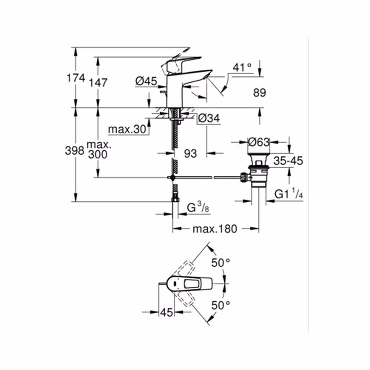 Specificații baterie lavoar monocomanda GROHE Start Loop