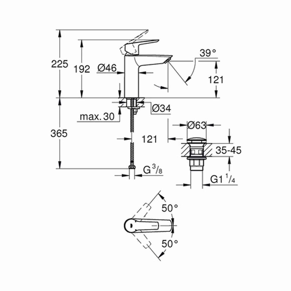 Specificații baterie lavoar monocomandă GROHE Start negru mat