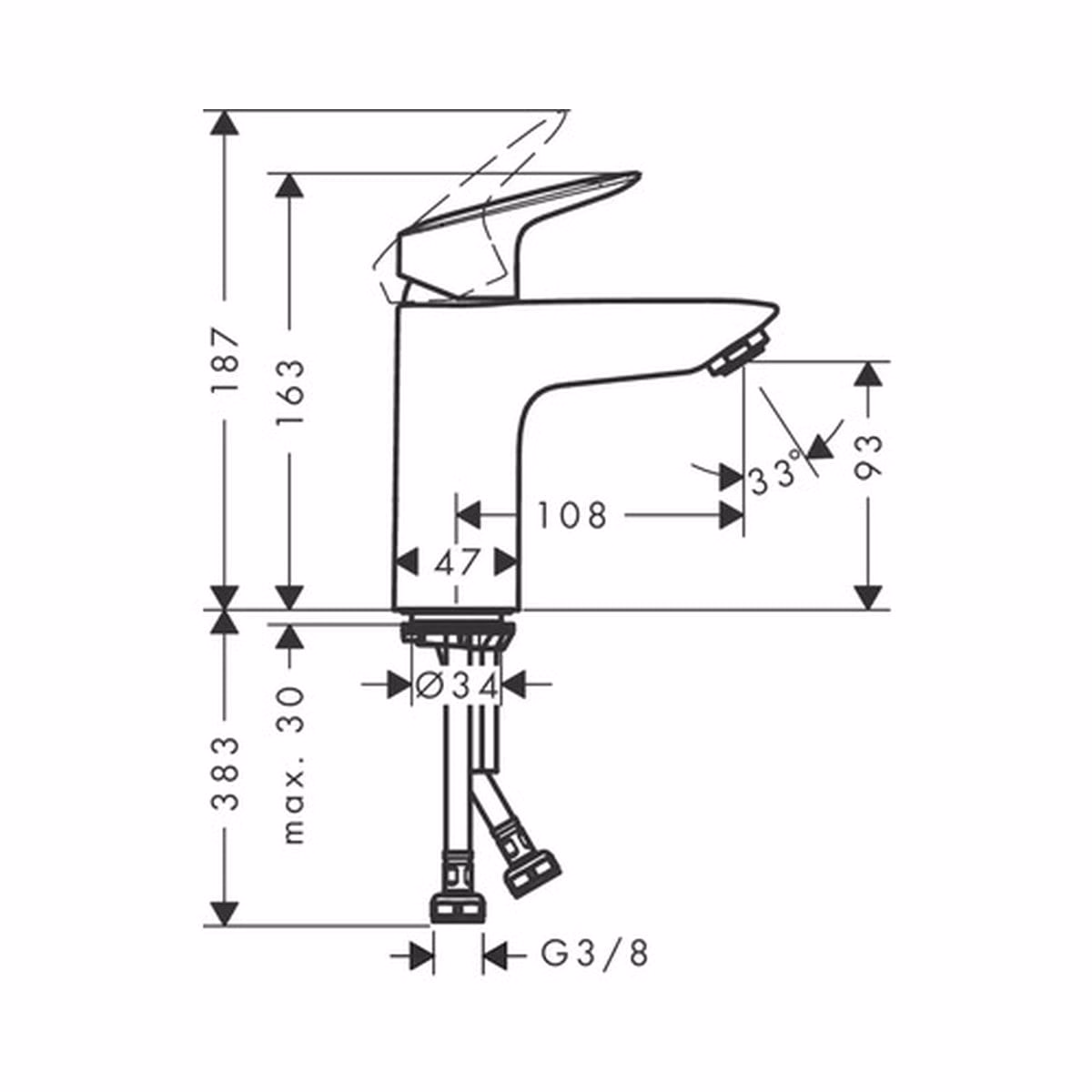 Specificații baterie lavoar monocomandă hansgrohe logis