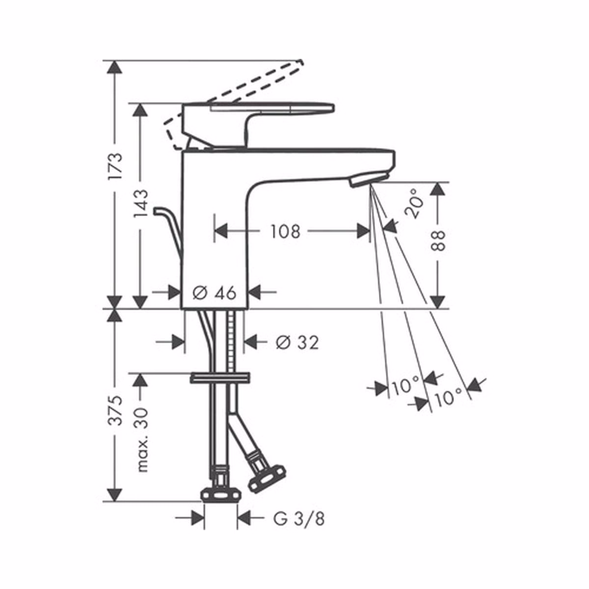 Specificații baterie lavoar monocomandă hansgrohe vernis blend
