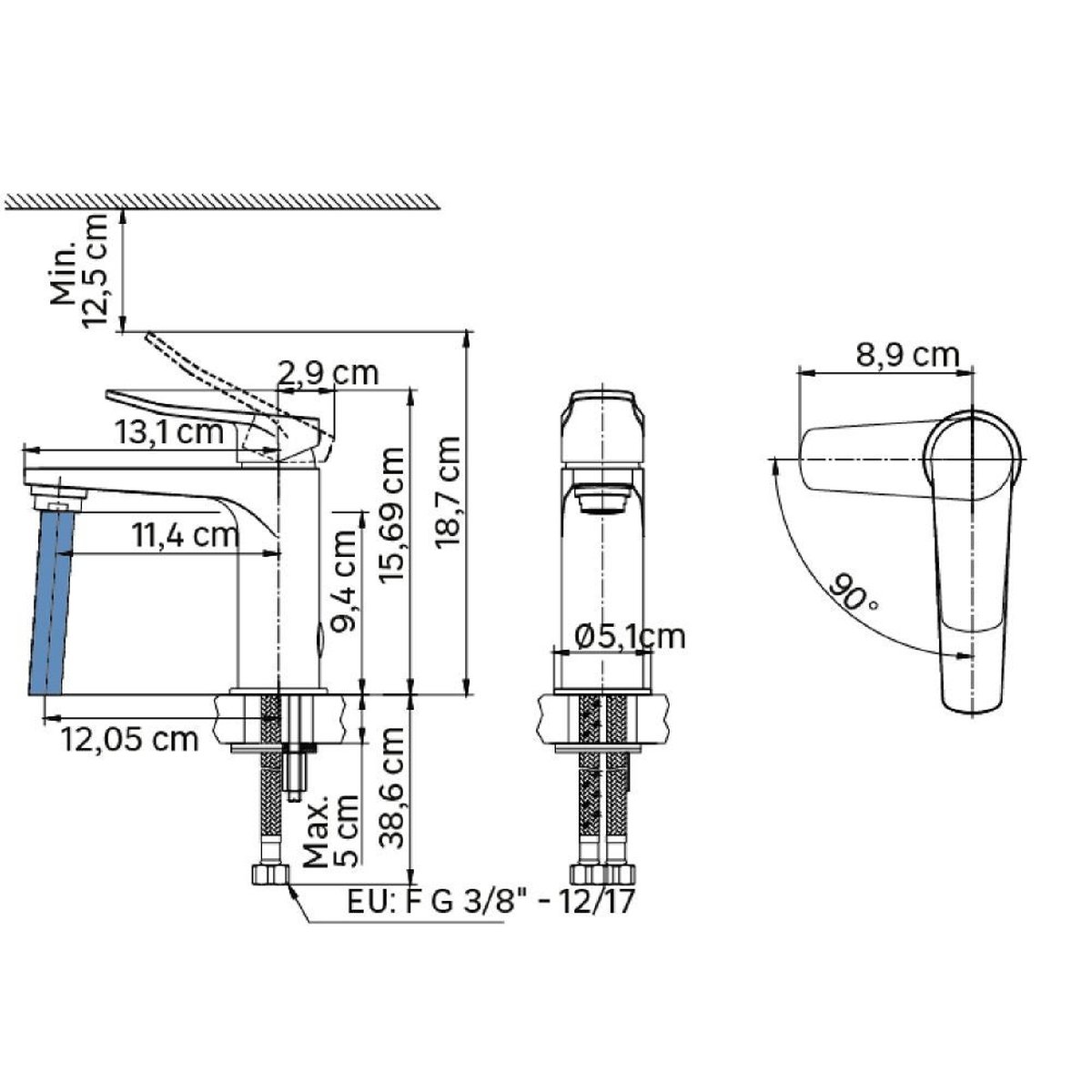 - Verificați înălțimea jetului de apă și adâncimea lavoarului pentru a garanta un spațiu suficient și ideal între baterie și lavoar.
