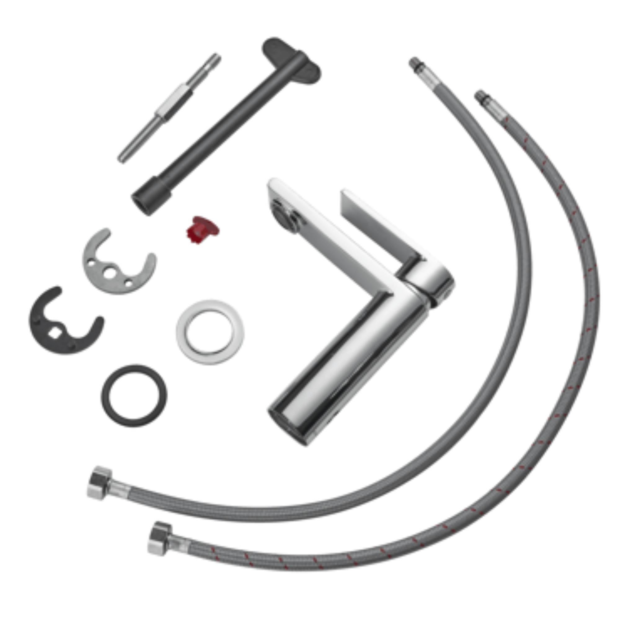 Fabricată din alamă de înaltă calitate și având mâner din Zamac, această baterie este construită pentru durabilitate. Compatibilitatea cu apa caldă și rece o face o soluție universală pentru orice tip de instalație sanitară. Lungimea furtunului de alimentare de 55 cm oferă flexibilitate la instalare, iar designul potrivit pentru montarea pe blat completează aspectul funcțional și estetic al oricărei băi contemporane.