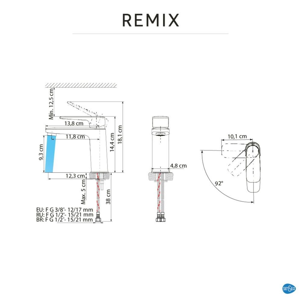 Recomandată pentru lavoare cu o lățime între 60 și 80 cm, bateria Sensea Remix este proiectată pentru eficiență energetică. Prin poziționarea centrală a manerului pentru apă rece și activarea apei calde doar la rotirea completă spre stânga, se evită consumul inutil de energie.