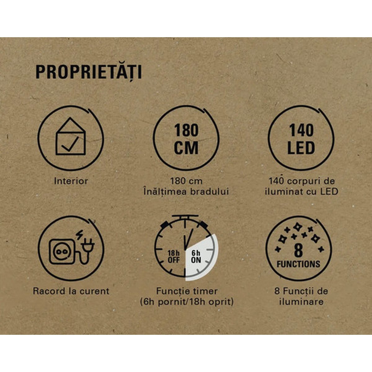 Datorită dimensiunilor sale generoase și aspectului festiv, acest brad artificial este potrivit pentru a fi amplasat în living, hol sau orice alt spațiu dorești să îl transformi într-un colț de poveste.