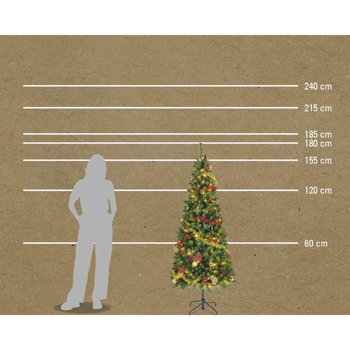 Fabricat din plastic de înaltă calitate, clorură de polivinil (PVC), acest brad artificial este durabil și va rămâne un element central al decorului festiv an după an. Culoarea sa verde vibrantă imită perfect aspectul unui brad natural, oferind un fundal superb pentru decorațiunile tale preferate.