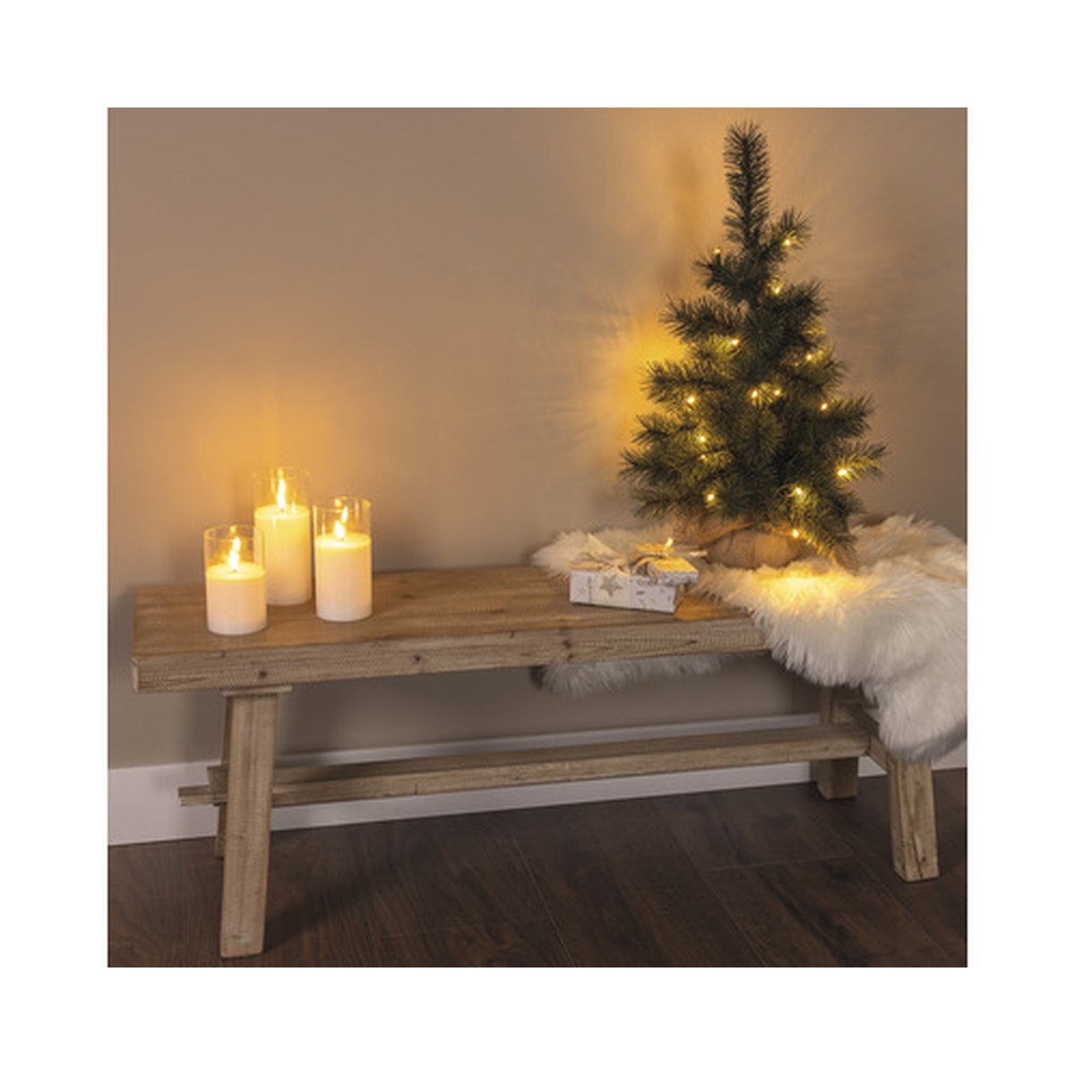 Un element deosebit îl reprezintă sistemul de iluminare integrat, cu 23 de becuri LED ce emit o lumină albă caldă, creând un ambient primitor și magic. Funcționarea pe bază de baterii (3 x AA-Mignon, neincluse) oferă flexibilitate în plasarea bradului, eliminând necesitatea unei prize în apropiere. Cronometrul integrat cu funcție de 6 ore asigură un consum eficient de energie.