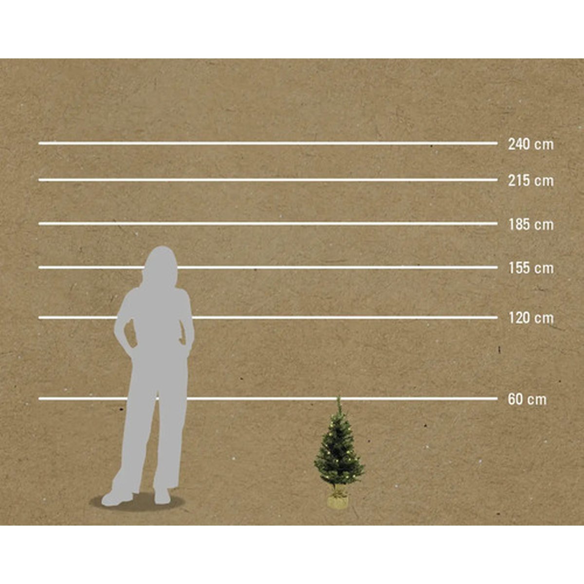 Baza bradului este acoperită cu un sac elegant din iută, adăugând un detaliu rustic și rafinat. Setul include și instrucțiuni clare de montaj, facilitând asamblarea rapidă și ușoară, precum și un suport solid pentru pomul de Crăciun.