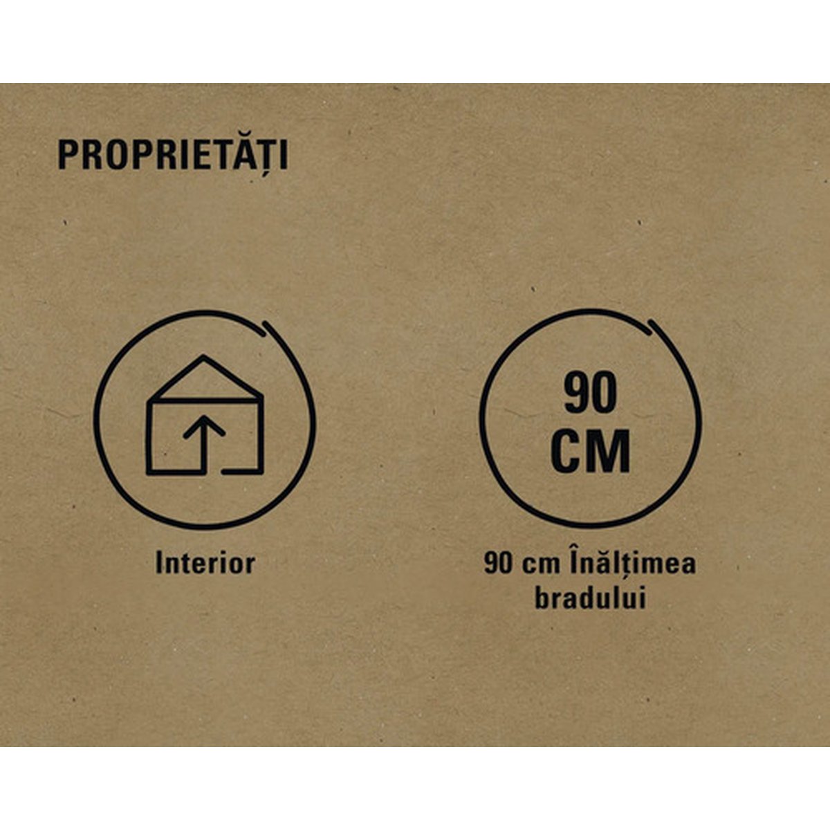 Cu o înălțime impresionantă de 90 cm și un diametru generos de 55 cm, acest brad se potrivește perfect în orice living, hol sau spațiu de birou. Culoarea sa vibrantă de verde conferă un aspect autentic și vesel, pregătit să fie împodobit cu decorațiunile tale preferate.