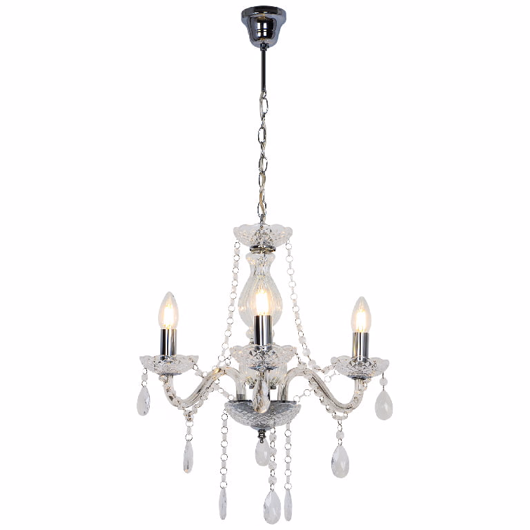 Candelabru lumanare sticla, transparent, 3xE14, finisaj lucios, este un candelabru deosebit cu un aspect clasic care va oferi incaperii dvs. un aer boem.