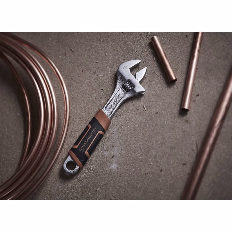 Aceasta cheie reglabila de 10 ” cu capacitatea maxilara de 34 mm de la Magnusson e realizata din aliaj de otel crom- vanadiu.