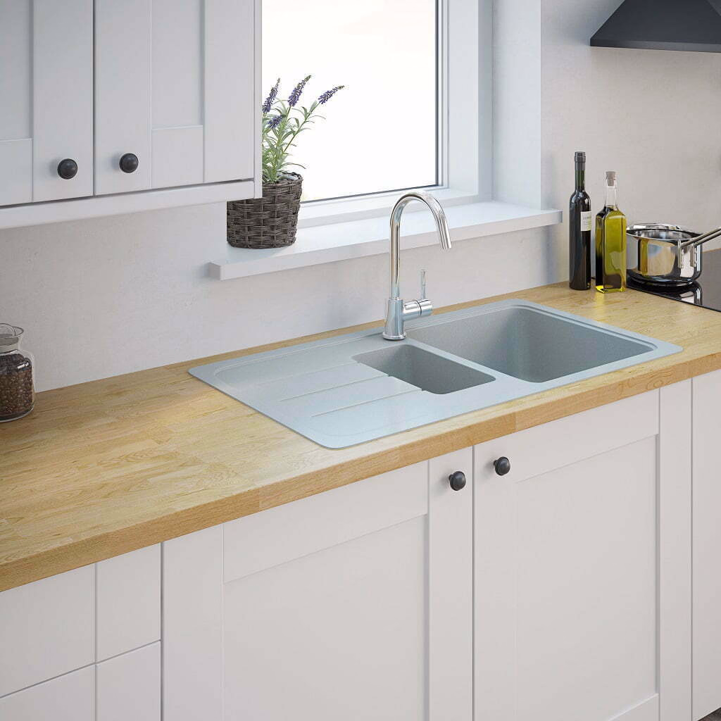 Dispune de 1,5 cuve si un picurator. • Este usor de montat pe blat • Este usor de curatat • Are design elegant si finisaj minimalist