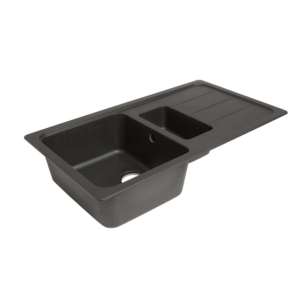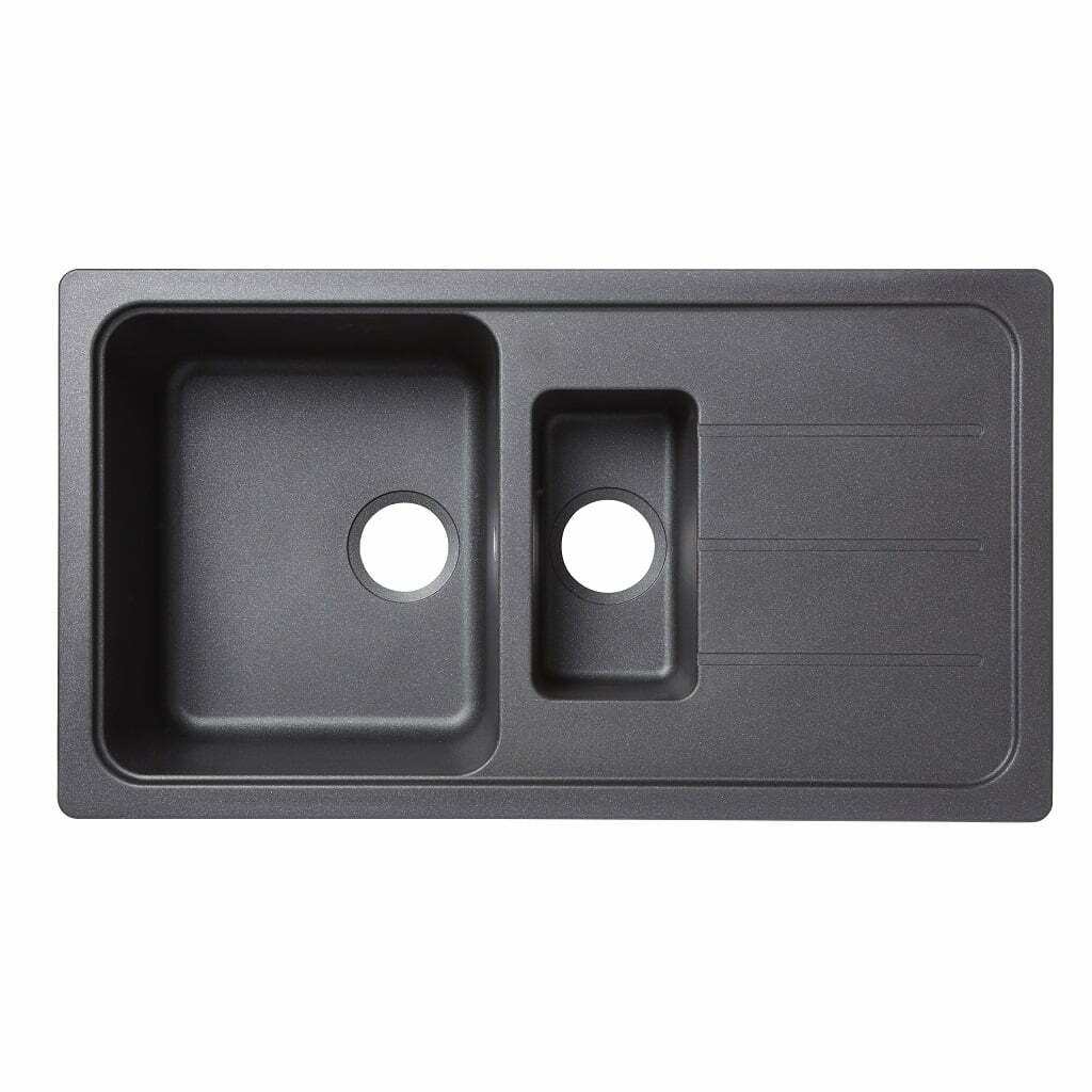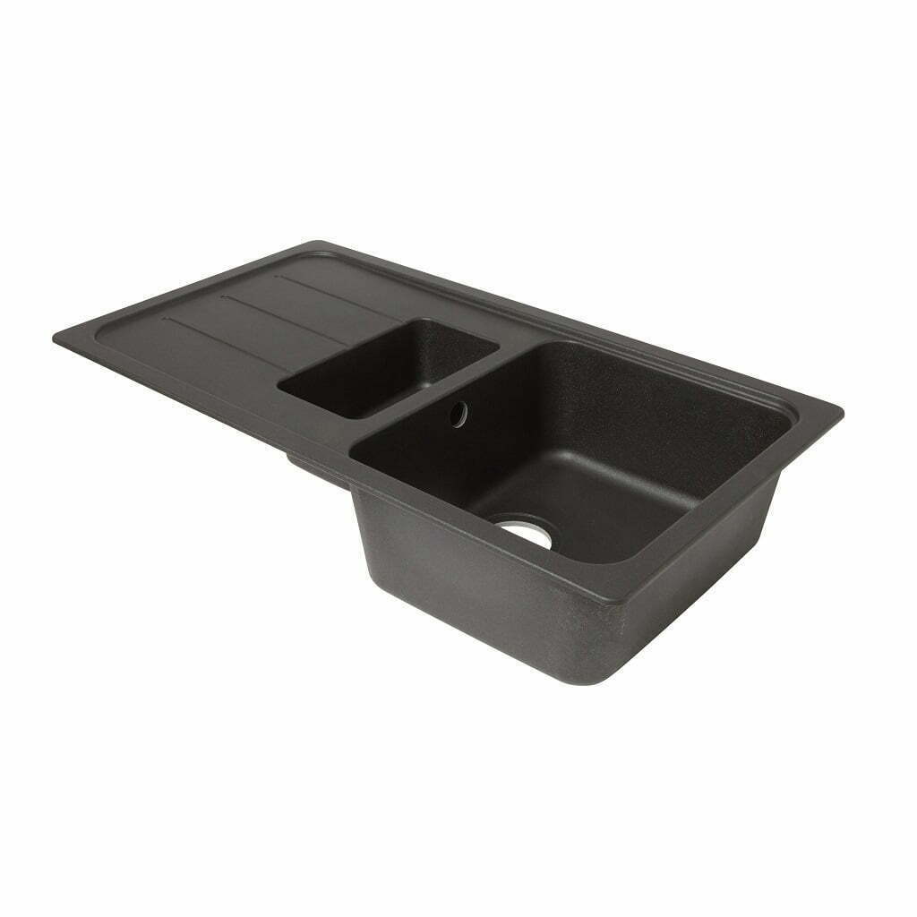 Chiuveta cuart compozit negru este compusa din 1,5 cuve si un picurator. Materialul de fabricatie este cuart compozit, iar finisajul este unul metalic, de culoare neagra.