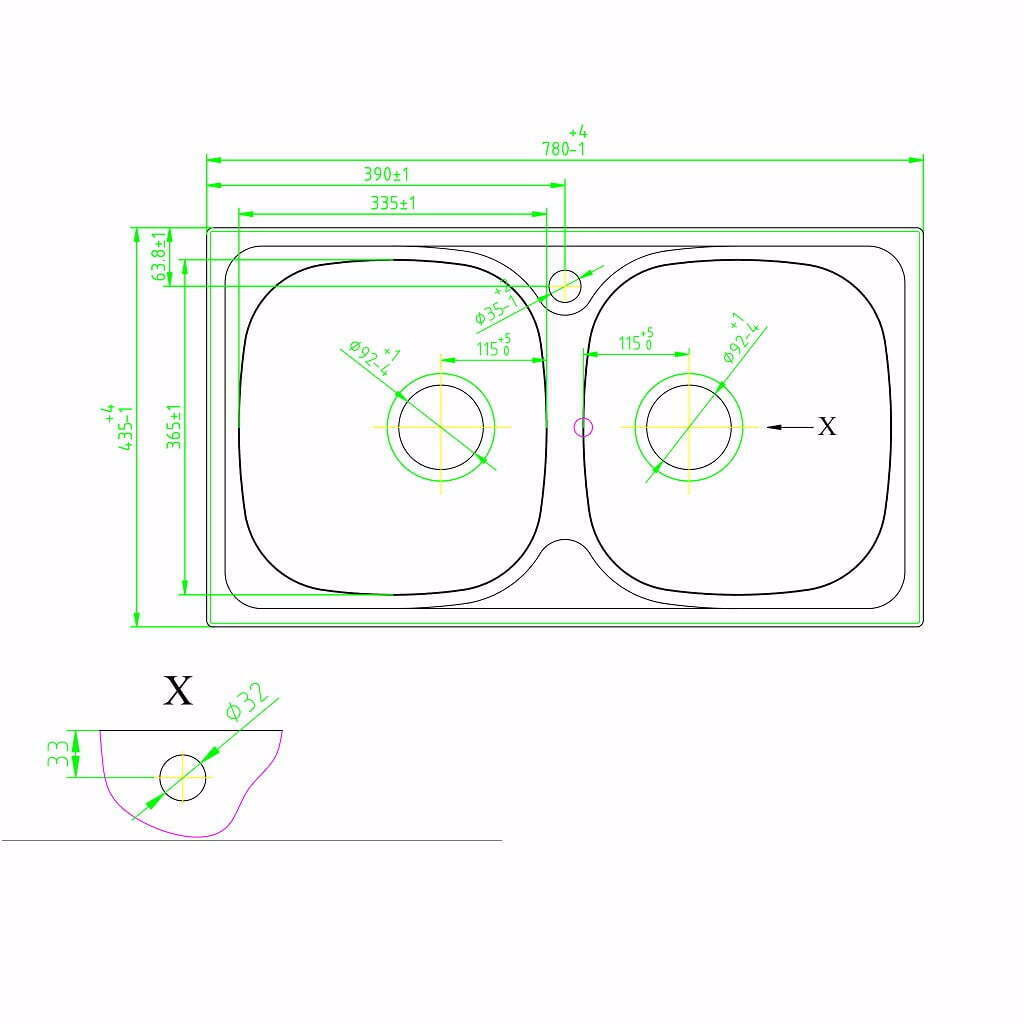 Caracteristici Chiuveta inox 2 cuve, 76 x 41.5 cm
