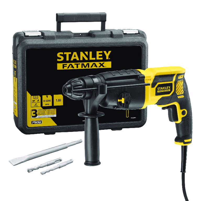 Ciocanul rotopercutor Stanley Fatmax MED500K 750W are o forta de impact de 1.8J si poate fi folosit pentru gaurire, perforare, cizelare.