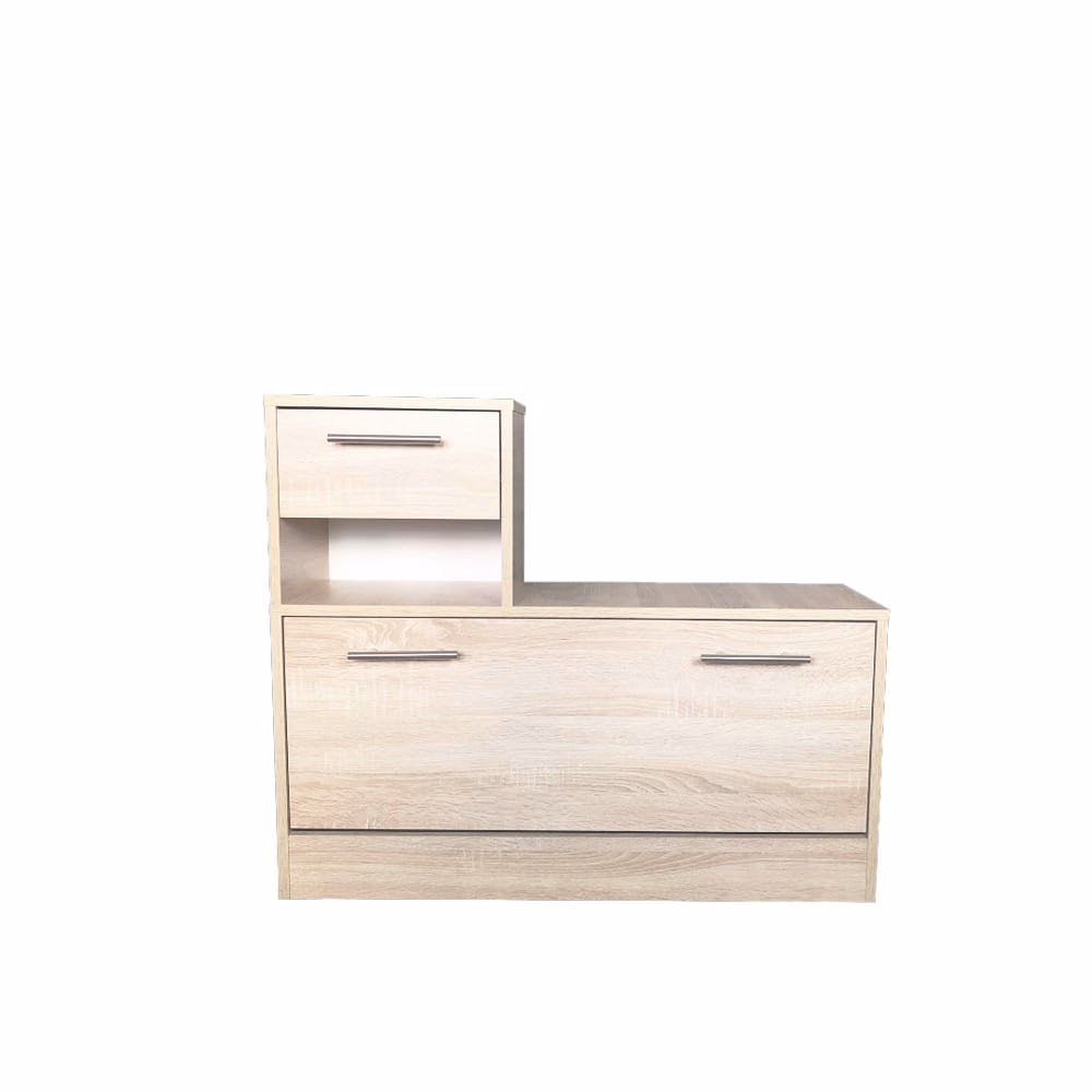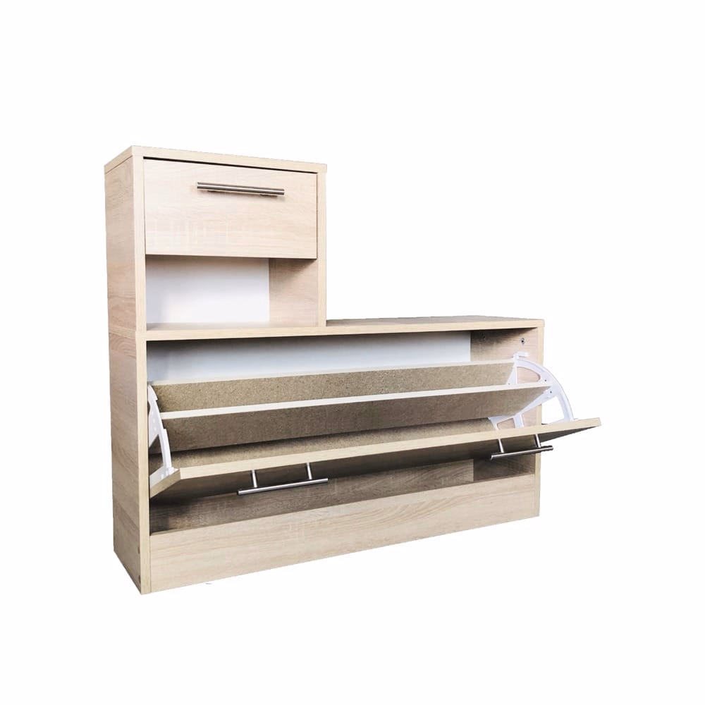 Cuierul, completat de o oglinda mare, iti ofera comoditatea de a te aranja inainte de a pleca din casa, in timp ce pantofarul integrat asigura o solutie practica pentru depozitarea incaltamintei.