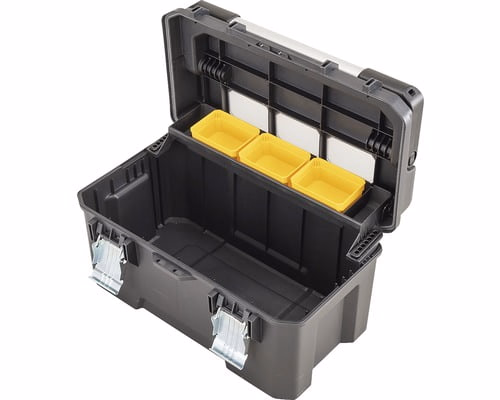 Cutie de scule Stanley Fatmax, 26 inch, inchizatori metalice are un design unic al tavii, cu compartimente detasabile pentru cupe in diferite dimensiuni si un spatiu lung, potrivit pentru unelte manuale si accesorii.