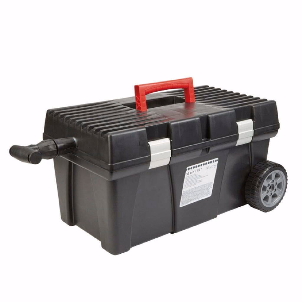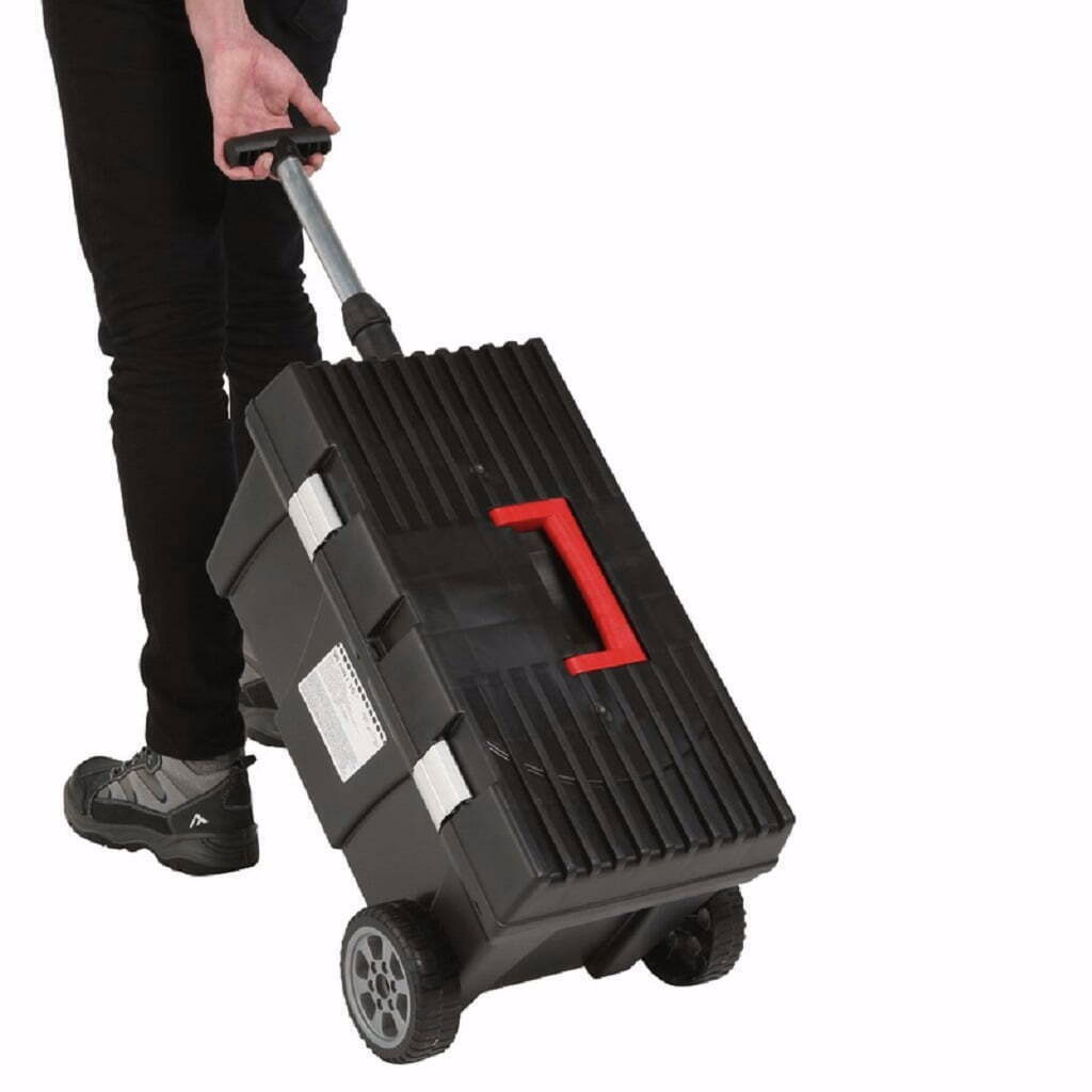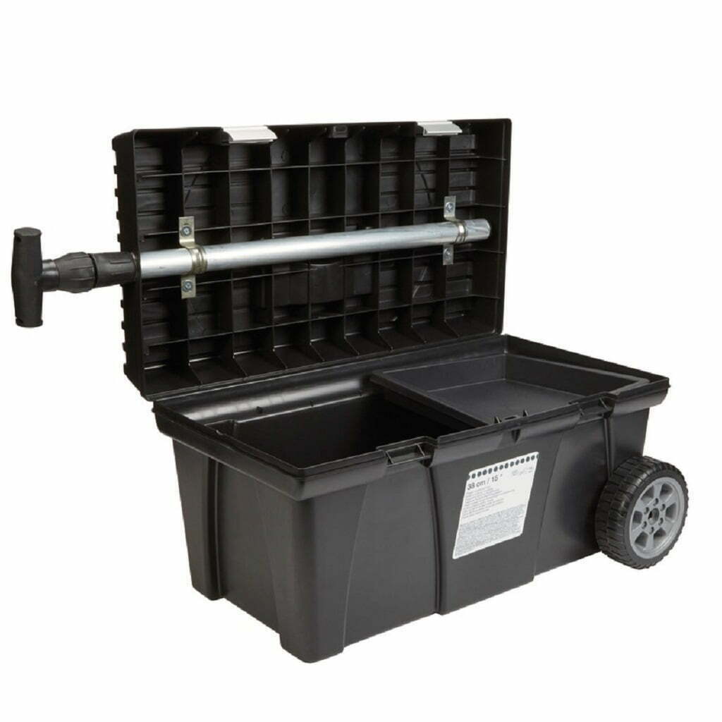 Potrivit pentru a va transporta sculele si uneltele electrice, acest cufar negru mobil cu o constructie durabila, un maner telescopic reglabil si un capac inclus.