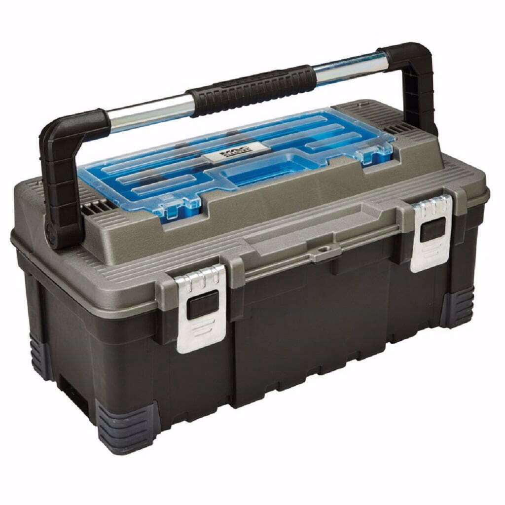 Avand o constructie rezistenta si un design compact, aceasta cutie de instrumente este potrivita atat pentru profesionisti, cat si pentru bricolaj. Interiorul spatios poate contine scule mici si mijlocii, in timp ce organizatorul detasabil cu maner si separatoare de cauciuc reglabile este ideal pentru transportul si organizarea pieselor mici. Colturile din cauciuc antiderapant protejeaza, de asemenea, carcasa exterioara de suprafete aspre si adauga mai multa stabilitate pe suprafete mai netede. Usor de transportat datorita unui maner metalic robust cu o prindere moale, aceasta cutie de instrumente este o alegere excelenta pentru cei care cauta practic si durabilitate in acelasi produs