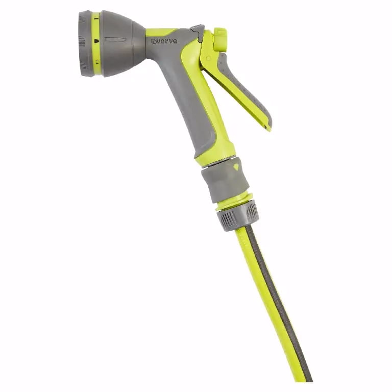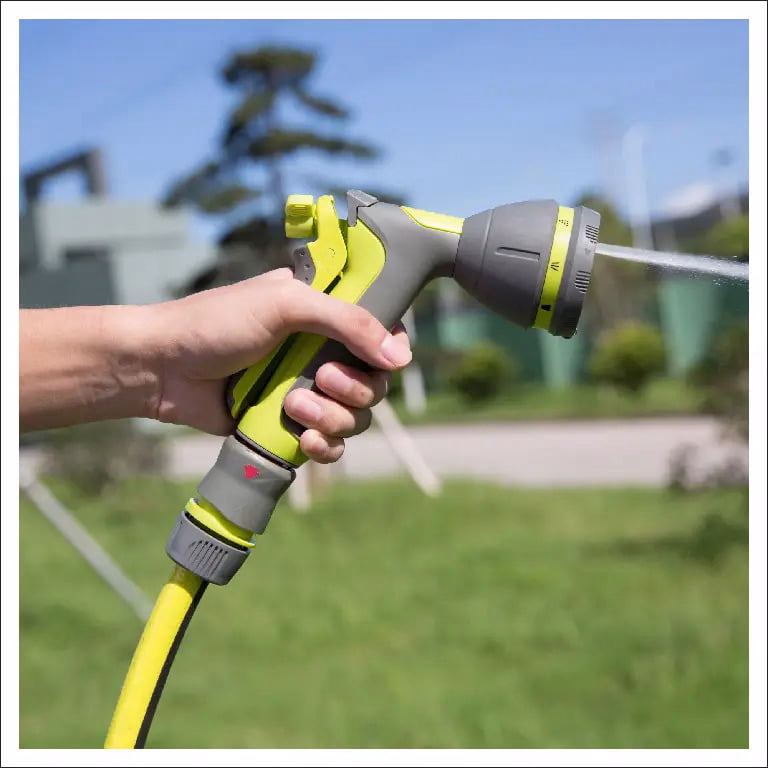 Pistolul cu jet poate fi folosit in orice tip de gradini si este prevazut cu opt functii diferite: stropire multipla, stropire directa, jet, pulverizare, stropire fina, udare centrala, udare plata si dus.