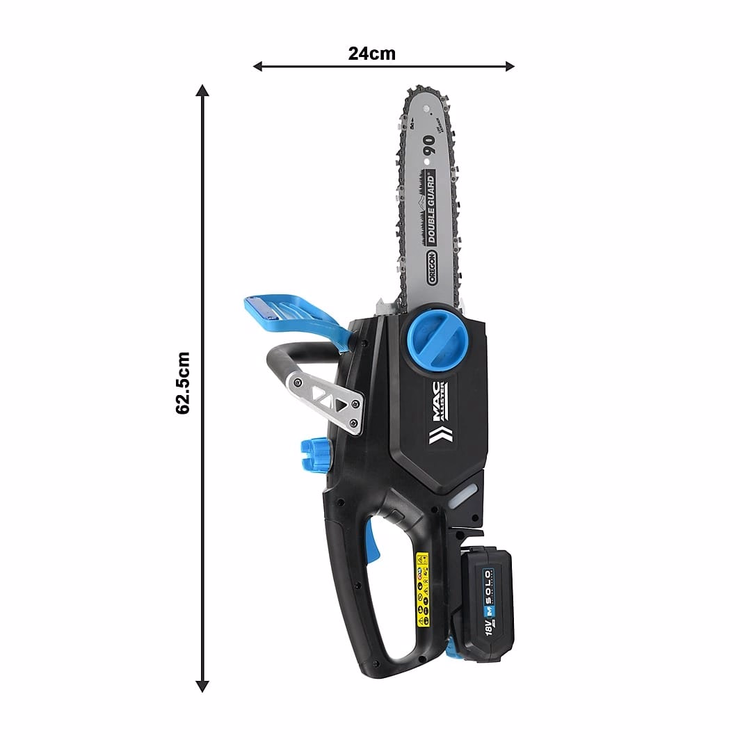 Descoperă puterea și flexibilitatea drujbei electrice fără fir Mac Allister MCS1825 Li, echipată cu o baterie de 18V și o lungime a lamei de 254 mm.