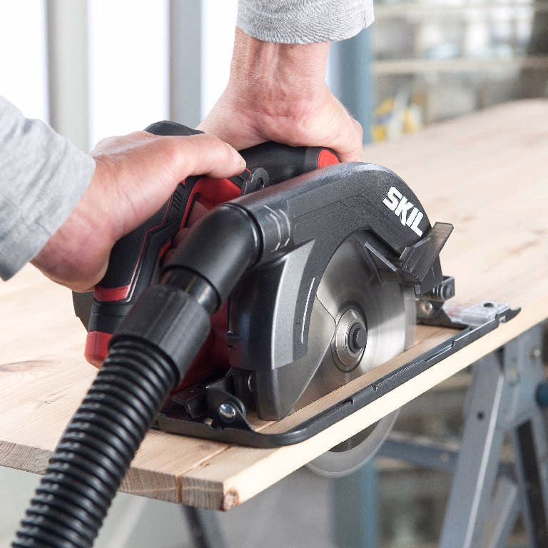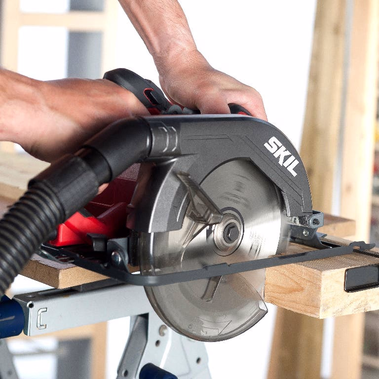 Fierastraul circular SW1E5810AA de la Skill este un dispozitiv robust realizat din materiale foarte bune calitativ destinat pentru taierea lemnului si poate fi folosit in orice gospodarie in diverse lucrari de tamplarie la diverse constructii. Este usor de folosit, are un maner moale, antiderapant, confortabil in utilizare si un buton de blocare de siguranta ce previne pornirea accidentala. Fierastraul circular este dotat cu un motor de 1250 W cu o turatie maxima de 5300 rpm, diametrul discului este de 184 mm, adancimea maxima de taiere la 90 de grade este de 63 mm, iar la 45 de grade este de 46 mm.
