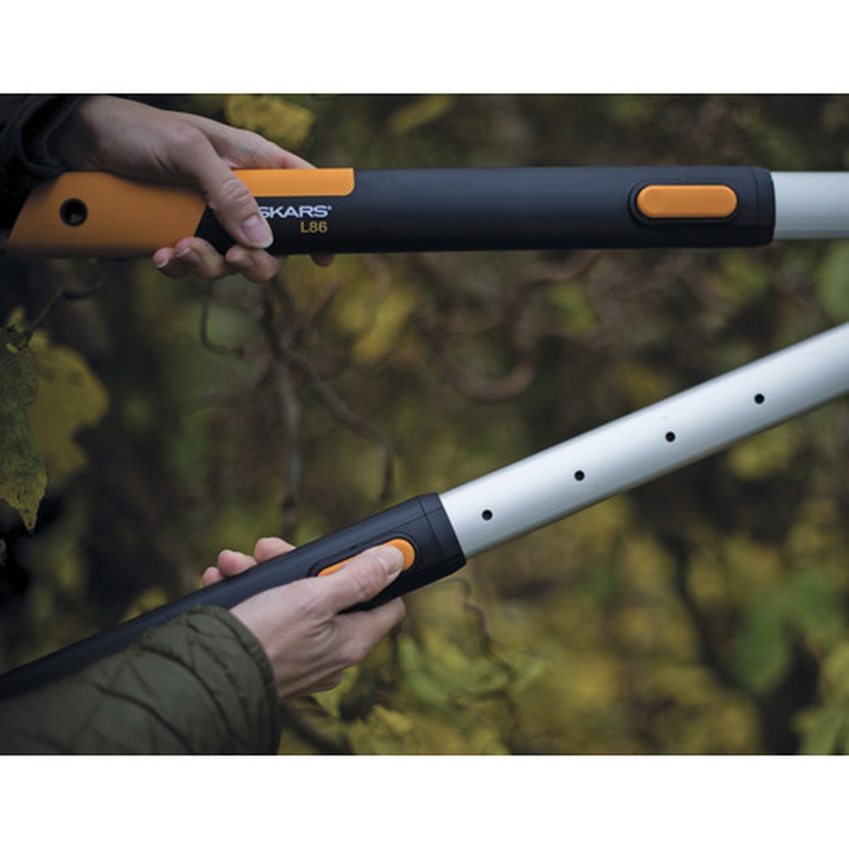 Foarfeca telescopică pentru gard viu Fiskars SmartFit HS86 este concepută pentru a se adapta nevoilor dumneavoastră din grădină. Datorită sistemului ingenios de reglare a lungimii mânerelor, puteți ajunge cu ușurință atât la ramurile joase, cât și la partea superioară a gardului viu, fără a folosi o scară.