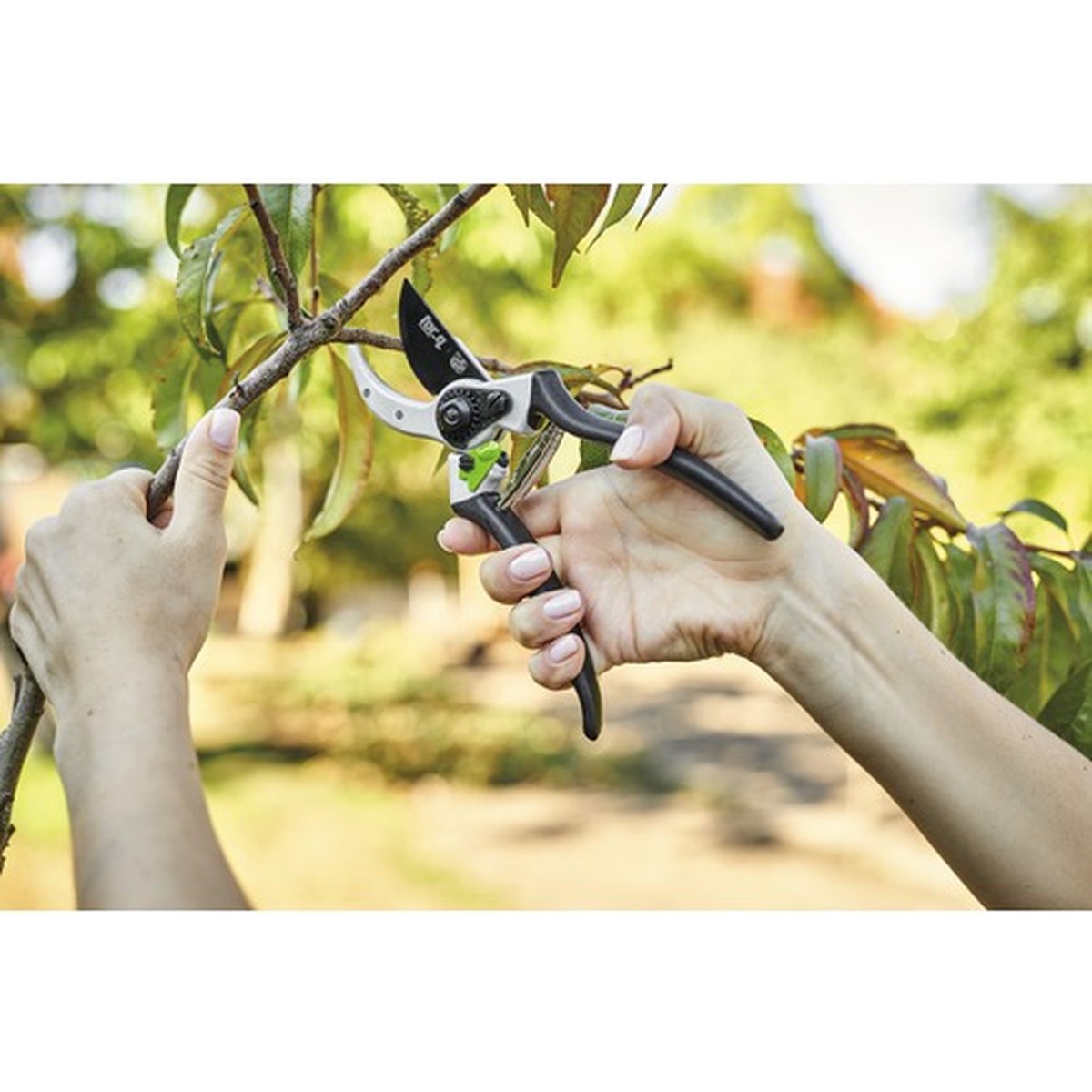Lamele sunt realizate din oțel carbon durabil, fiind prevăzute cu un strat antiaderent care împiedică lipirea sevei și a resturilor vegetale, facilitând astfel o utilizare fluidă. Mânerul din aluminiu contribuie la o greutate redusă de doar 0.275 kg, oferind în același timp o rezistență excelentă la coroziune și o manevrabilitate sporită.