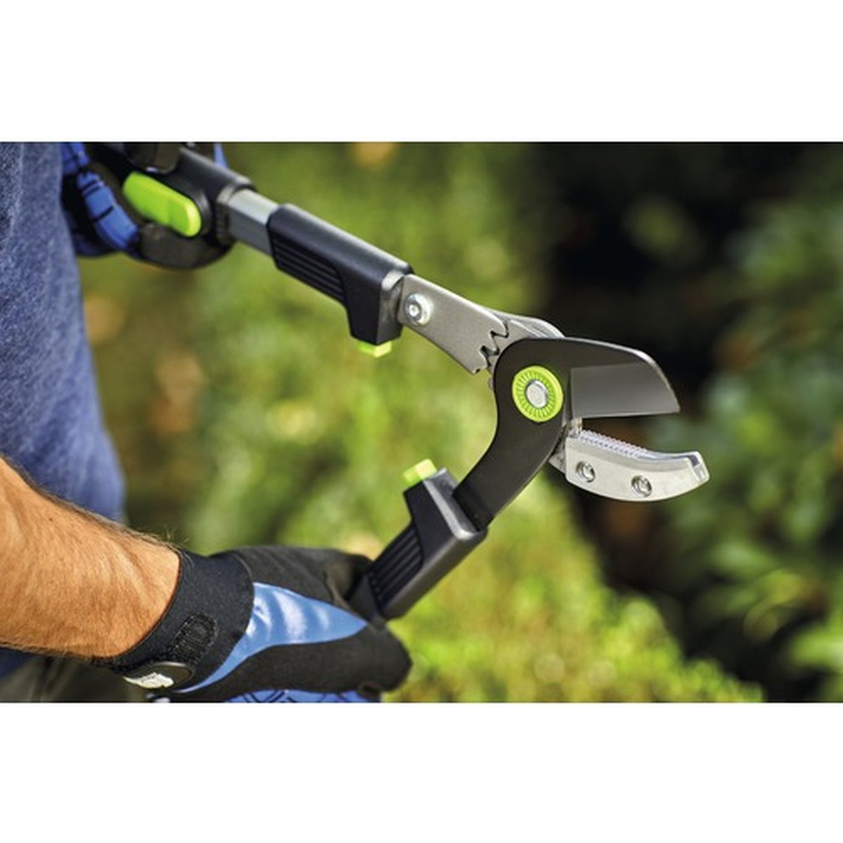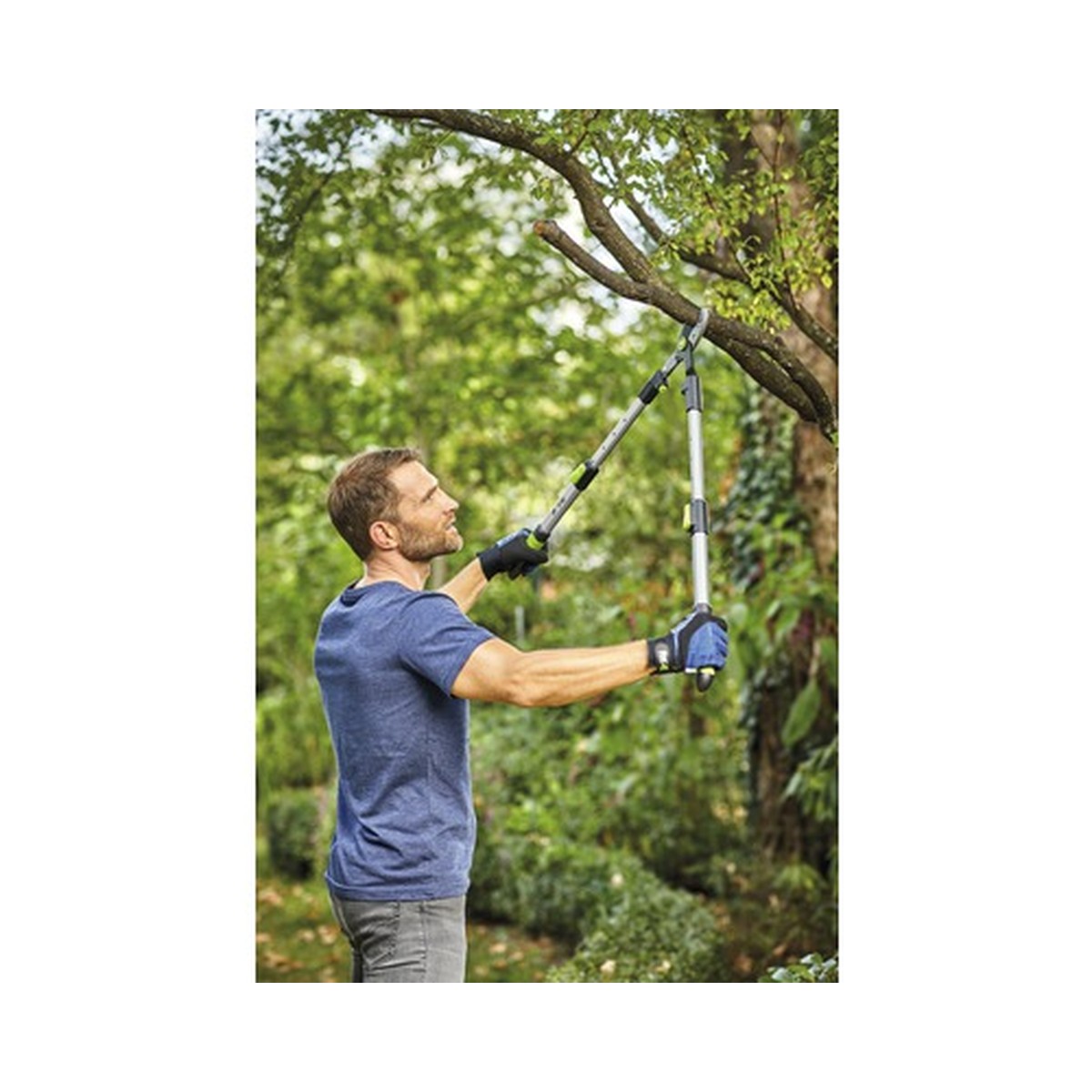 Echipată cu mânere telescopice ce oferă o extensie de 20 cm, foarfeca permite accesul facil la crengile aflate la înălțime, fără a fi nevoie de efort suplimentar. Construcția din aluminiu a mânerelor asigură un echilibru perfect între durabilitate și greutate redusă, unealta cântărind doar 1.33 kg. Acest aspect face ca utilizarea cu ambele mâini să fie confortabilă chiar și pe durate mai lungi de timp.