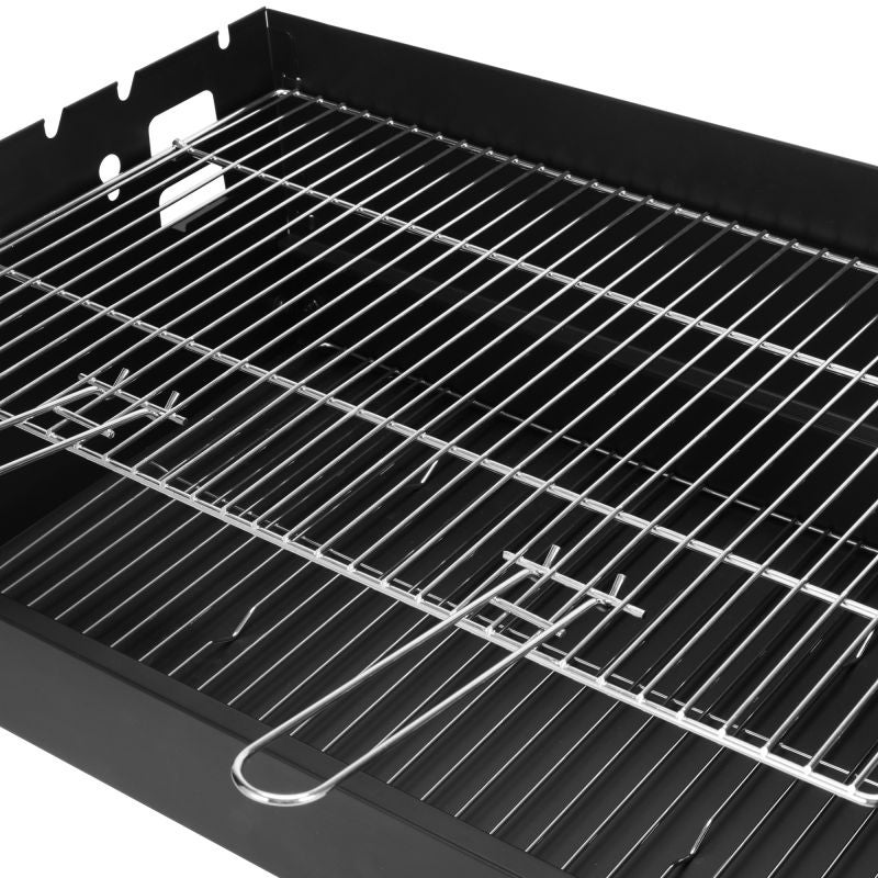 Alege grătarul Basica pe cărbune pentru momente memorabile petrecute cu familia și prietenii. Construcția sa robustă din oțel, cu o grosime a tablei de 0.8 mm, asigură stabilitate și durabilitate, ideal pentru utilizare frecventă.