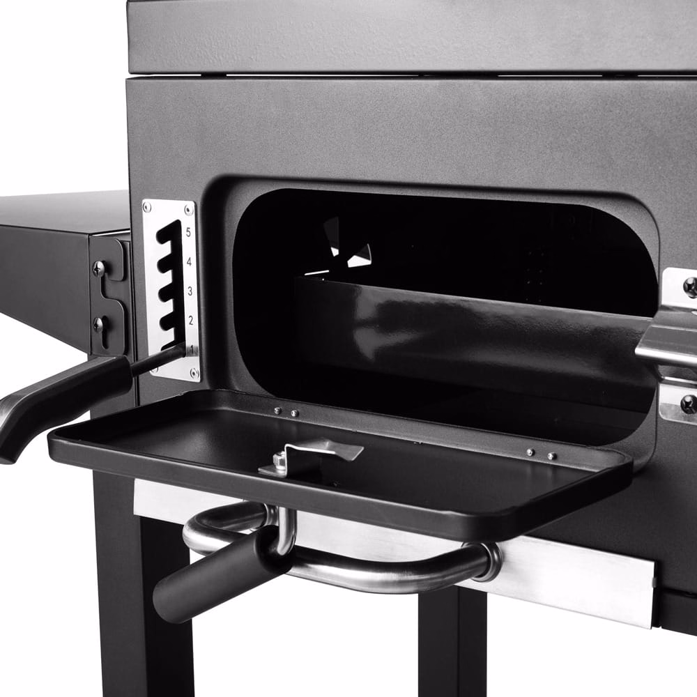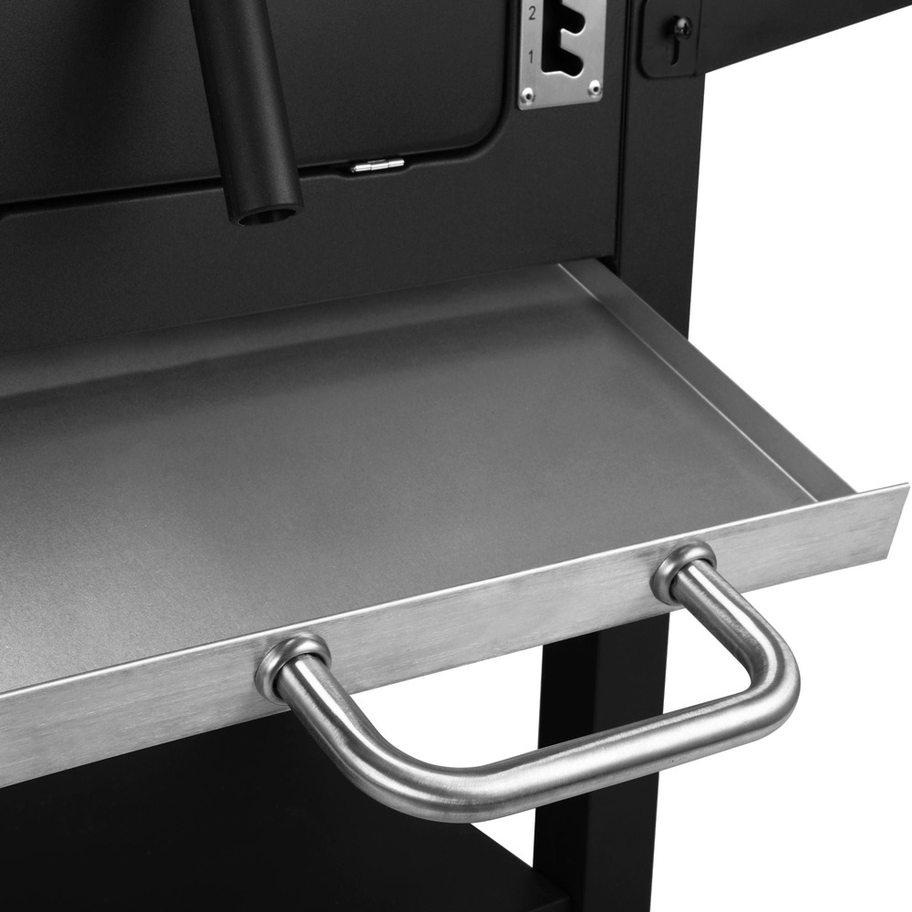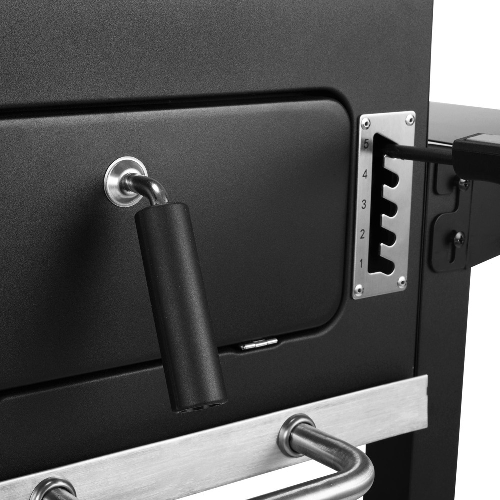 Gratarul dispune de un design robust si include un afumator, adaugand o dimensiune suplimentara experientei culinare.
