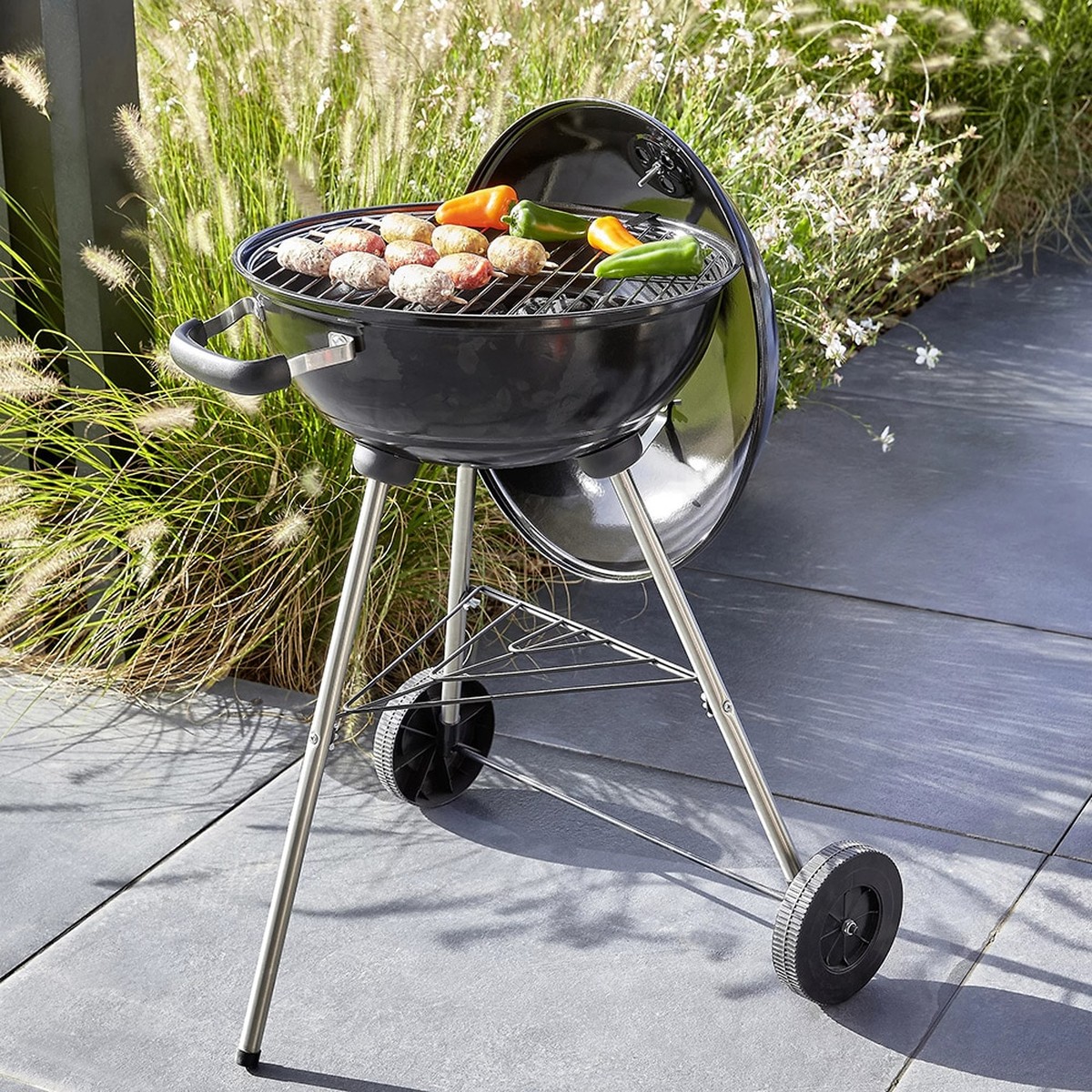 Echipat cu o suprafață de gătit circulară cu diametrul de 43 cm, grătarul permite prepararea simultană a mai multor tipuri de alimente. Un aspect esențial al acestui model este mobilitatea sa; structura este prevăzută cu roți rezistente care permit deplasarea ușoară. Mai mult, funcția de roți blocabile asigură stabilitatea deplină a grătarului în timpul utilizării, prevenind mișcările accidentale.