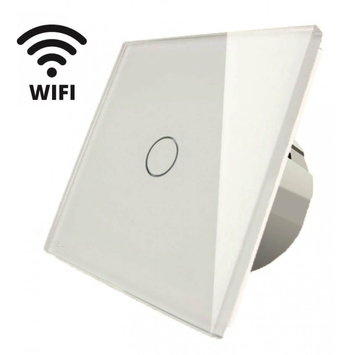 Cumpara ieftin Intrerupator touch simplu WI-FI sticla securizata alb