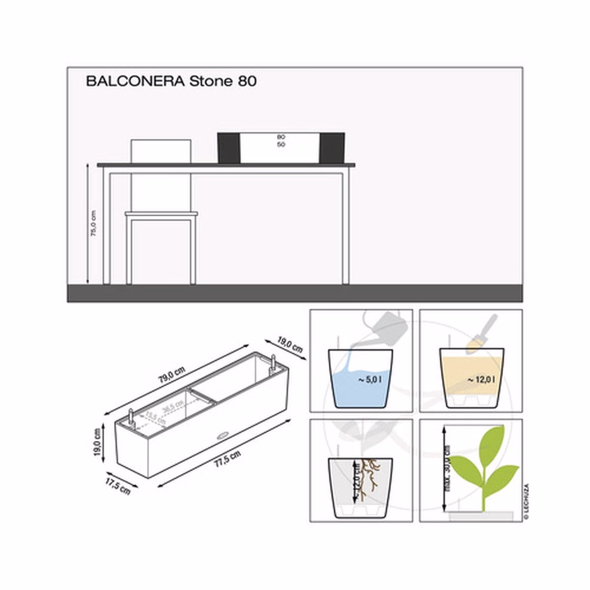 Jardinieră Lechuza Balconera Stone – Eleganță și Rezistență pentru Plantele Tale
